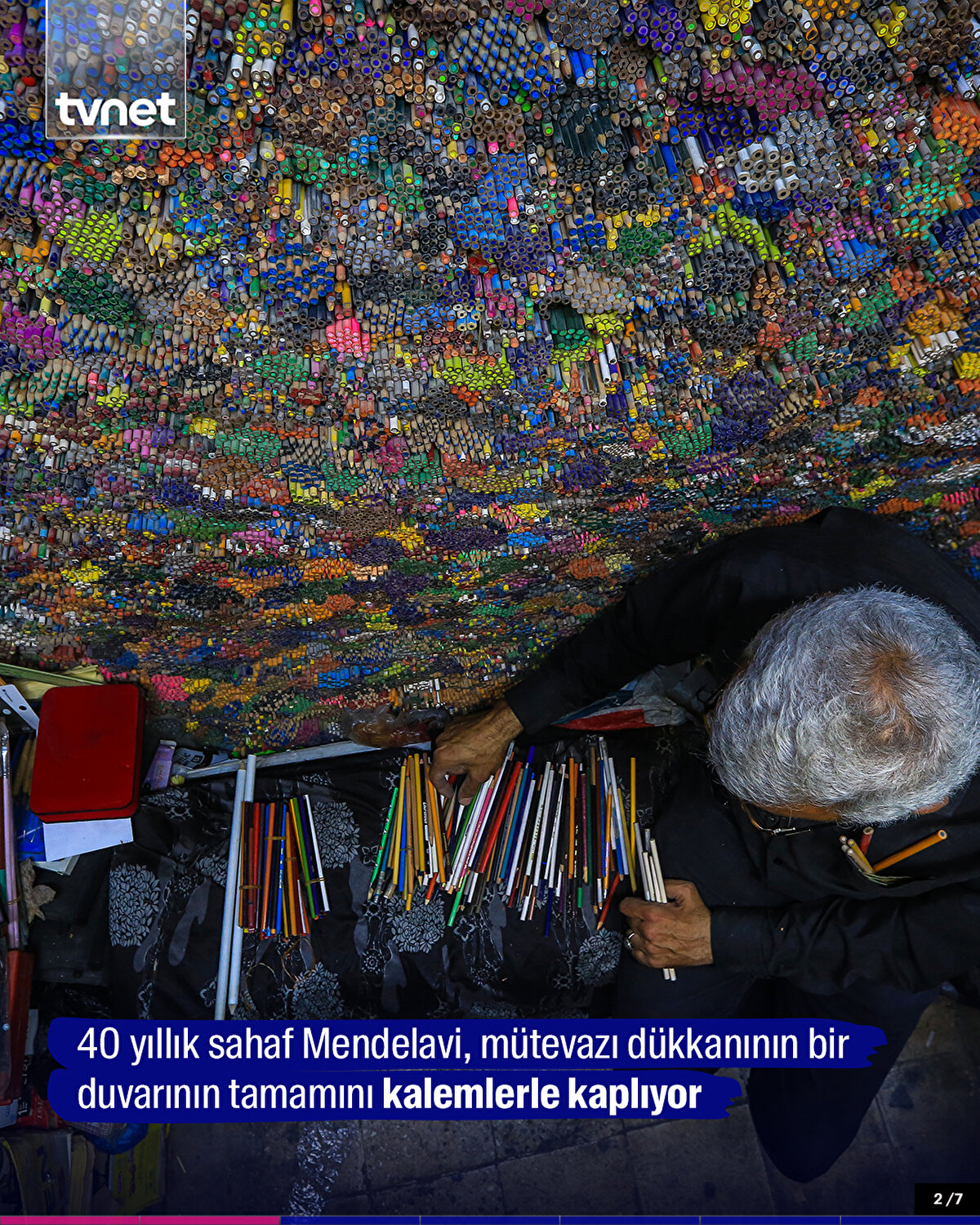 40 yıllık sahaf Mendelavi, mütevazi dükkanının bir duvarının tamamını kalemlerle kaplıyor. Farklı yüzyıllara ait kurşun ve tükenmez kalemler arasında dünyaca ünlü kalem markaları da bulunuyor. Tarihi bir kalem müzesi niteliğindeki dükkan, turistlerden de yoğun ilgi görüyor.
