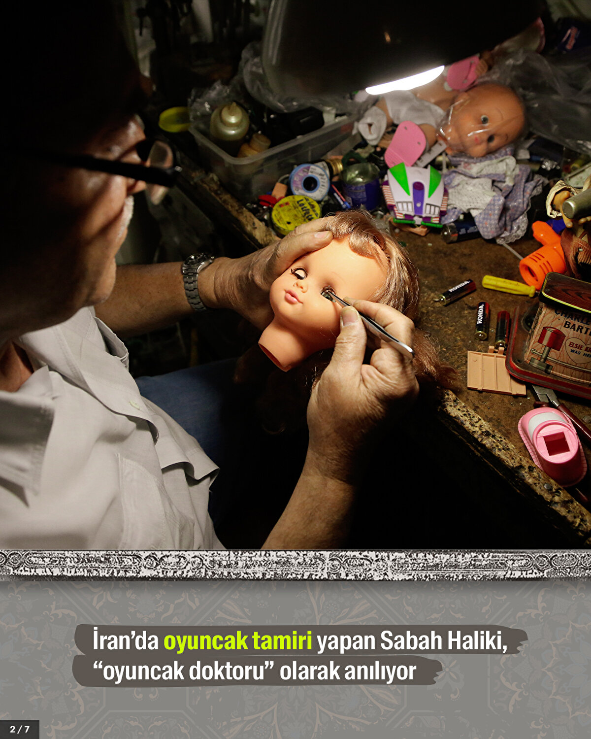 İranlı oyuncak tamircisi Sabah Haliki, yarım asırdır eski ve yeni oyuncakları tamir ediyor. Tahran'daki evini atölyeye çeviren Haliki, çocuklar ve oyuncak tutkunları tarafından "oyuncak doktoru" olarak isimlendiriliyor.