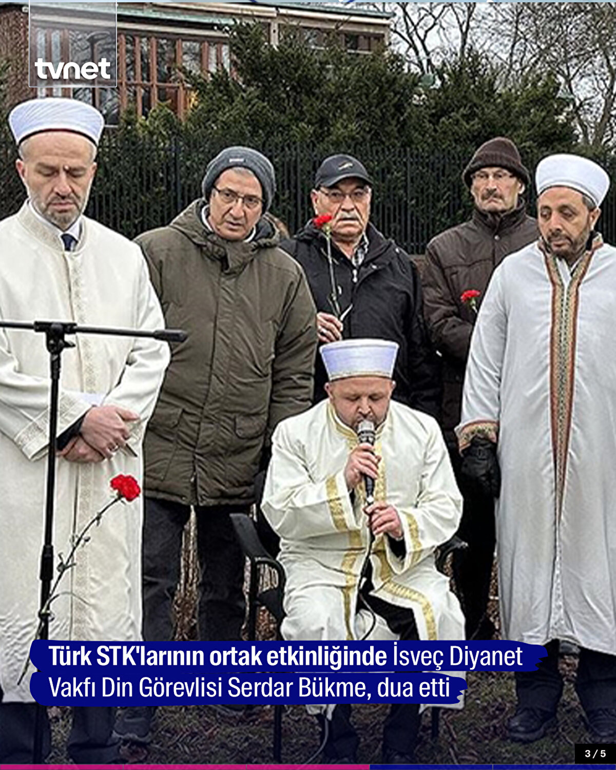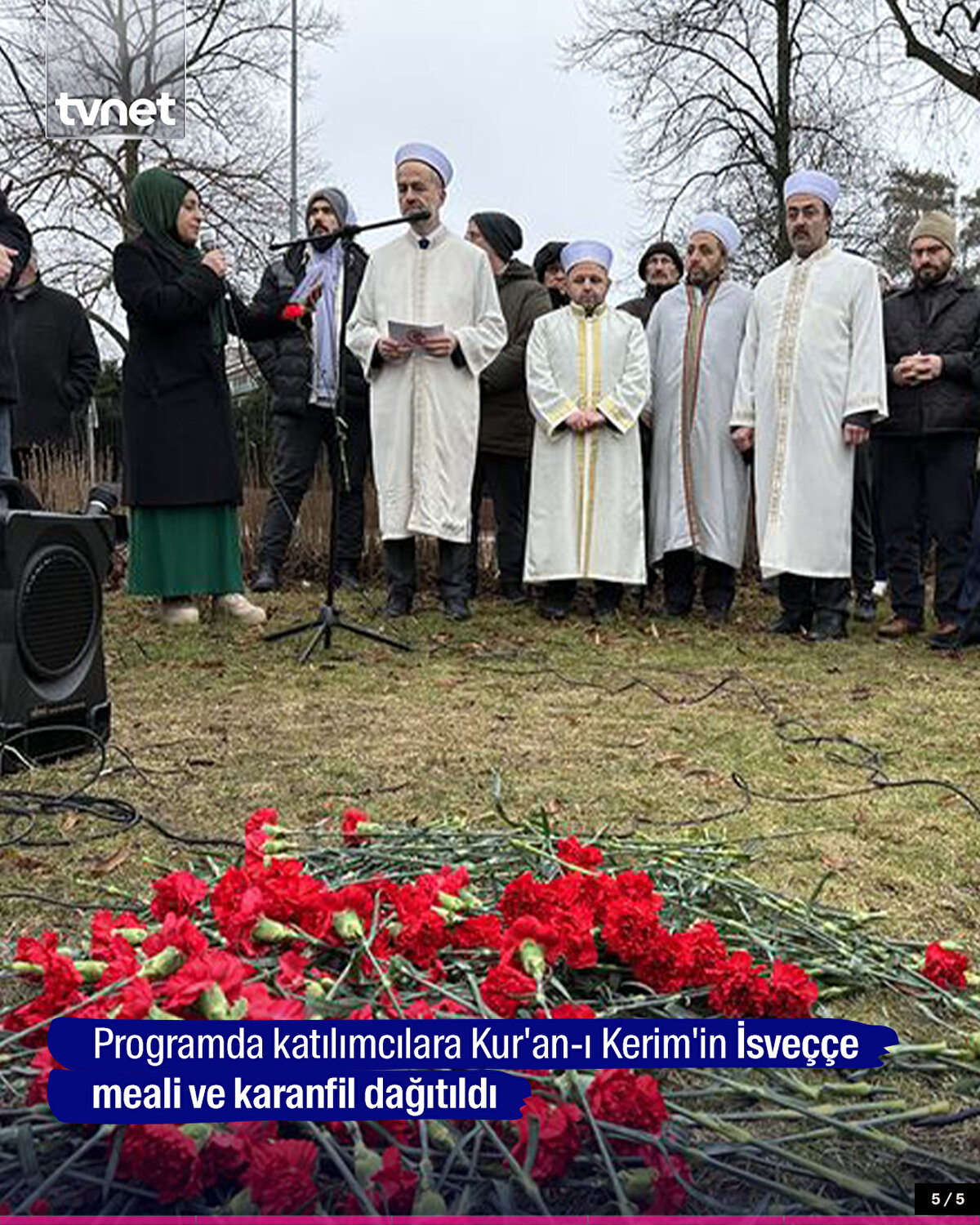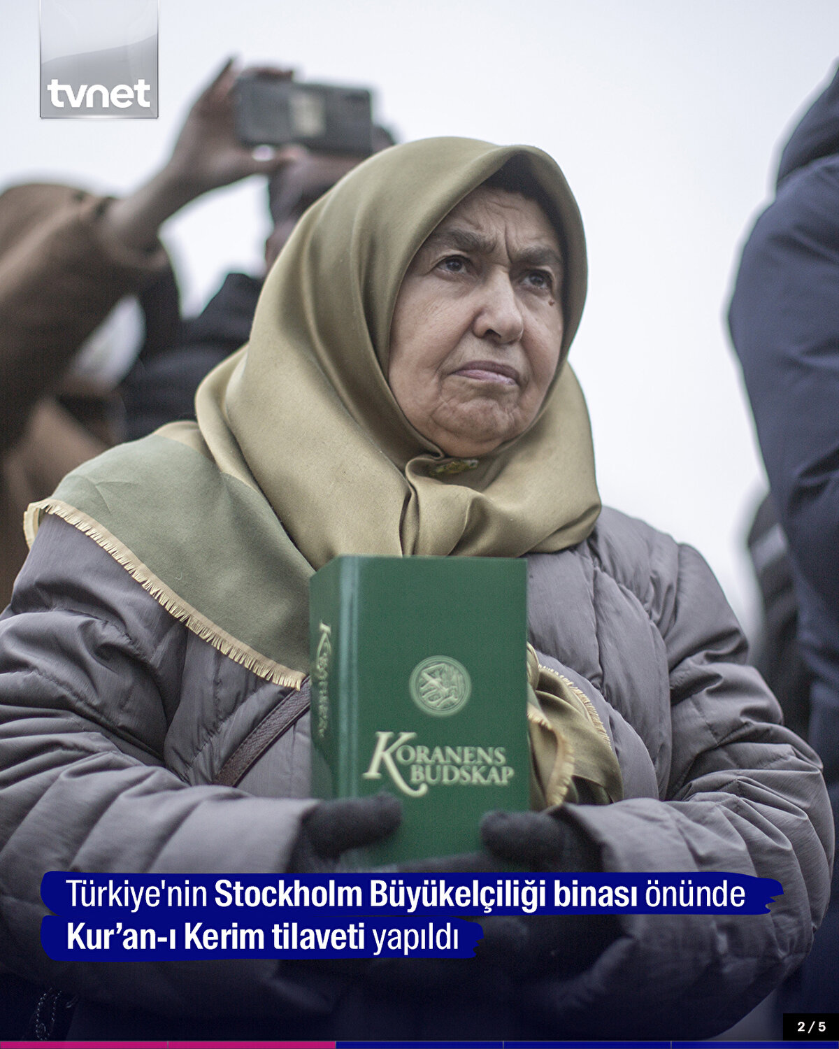 İsveç'te Kur'an-ı Kerim'in yakıldığı Türkiye'nin Stockholm Büyükelçiliği binası önünde Kur'an-ı Kerim tilaveti yapıldı. Programda katılımcılara Kur'an-ı Kerim'in İsveççe meali ve karanfil dağıtıldı.