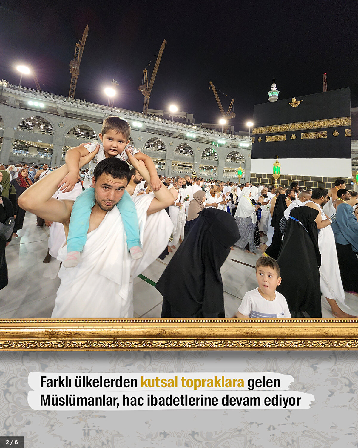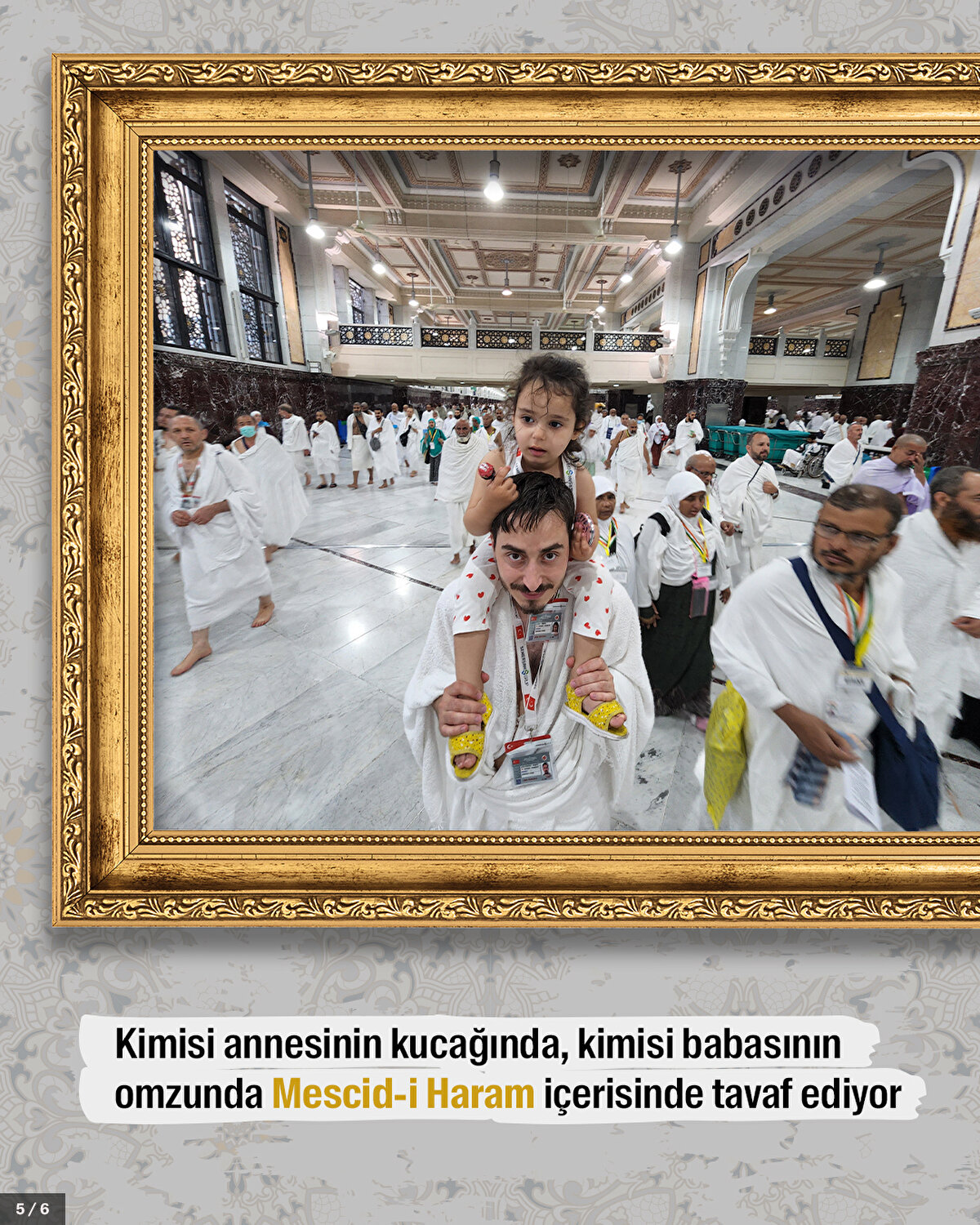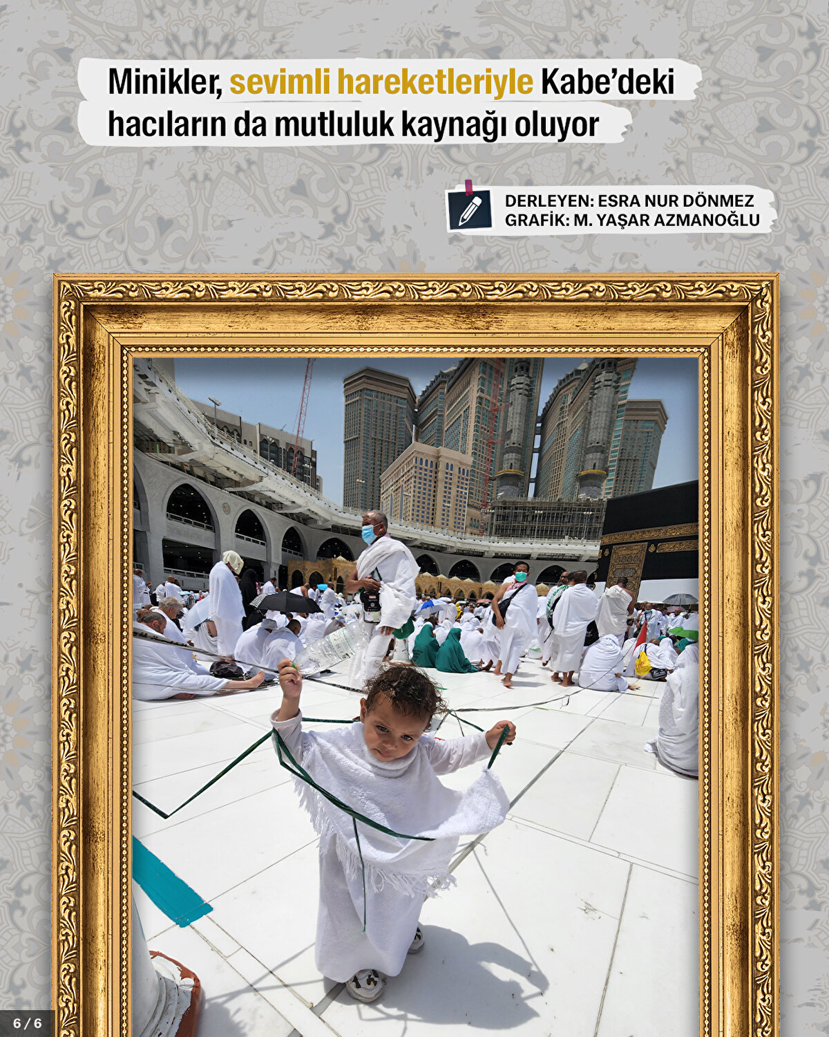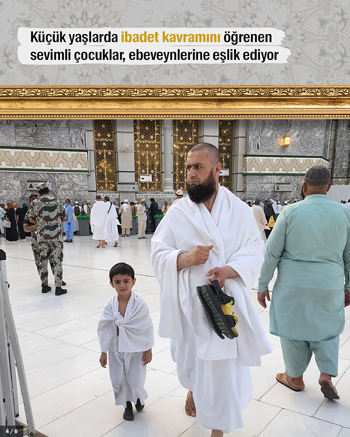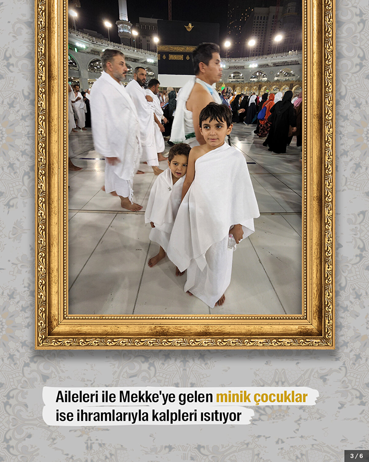Ailelerinin ibadetlerine eşlik etmek üzere Mekke'ye giden minik çocuklar, ihramlarıyla kalpleri ısıttı.