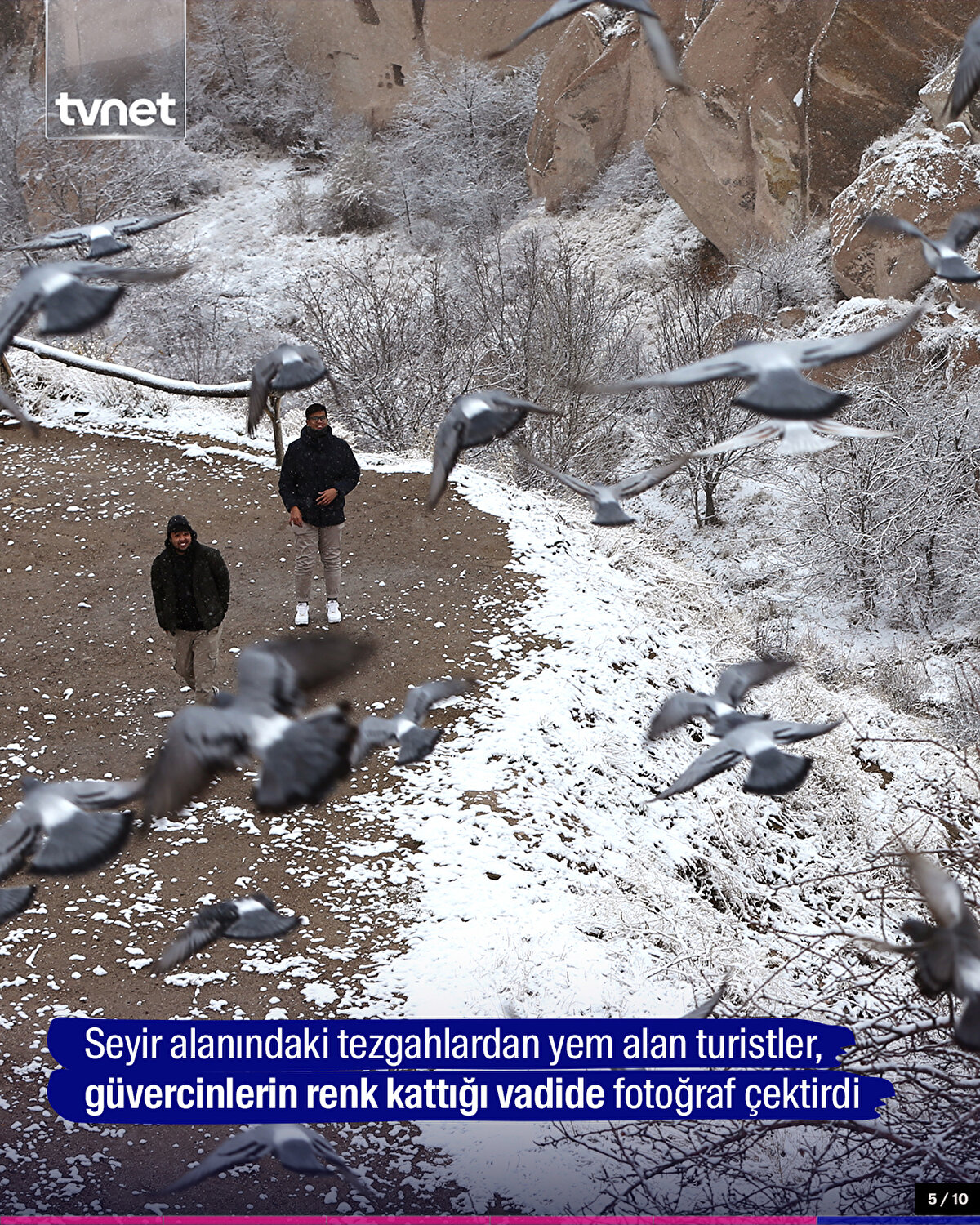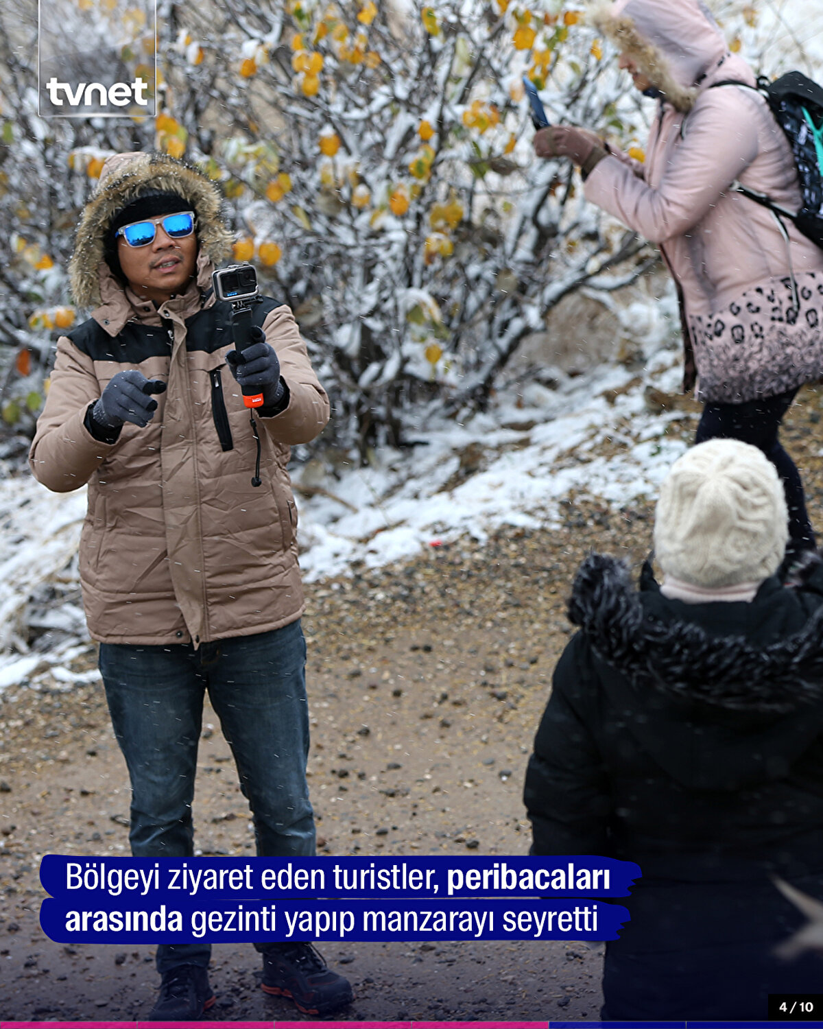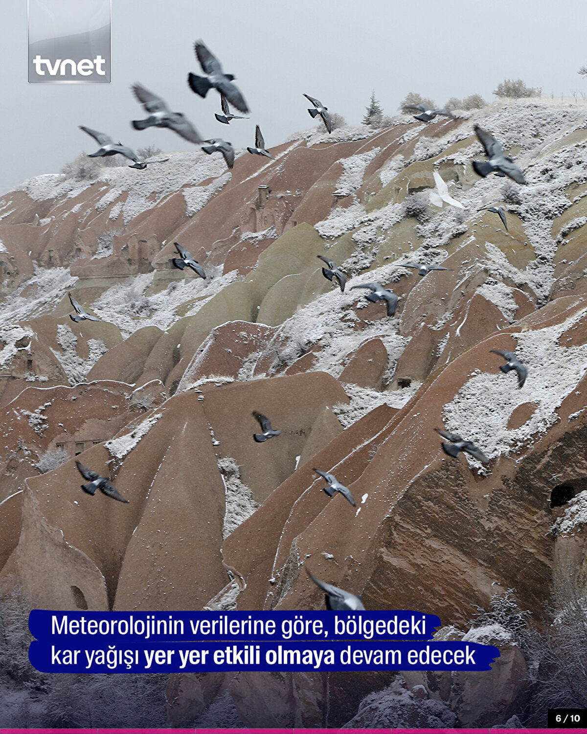 Kapadokya’daki peribacaları beyaz örtüyle kaplandı