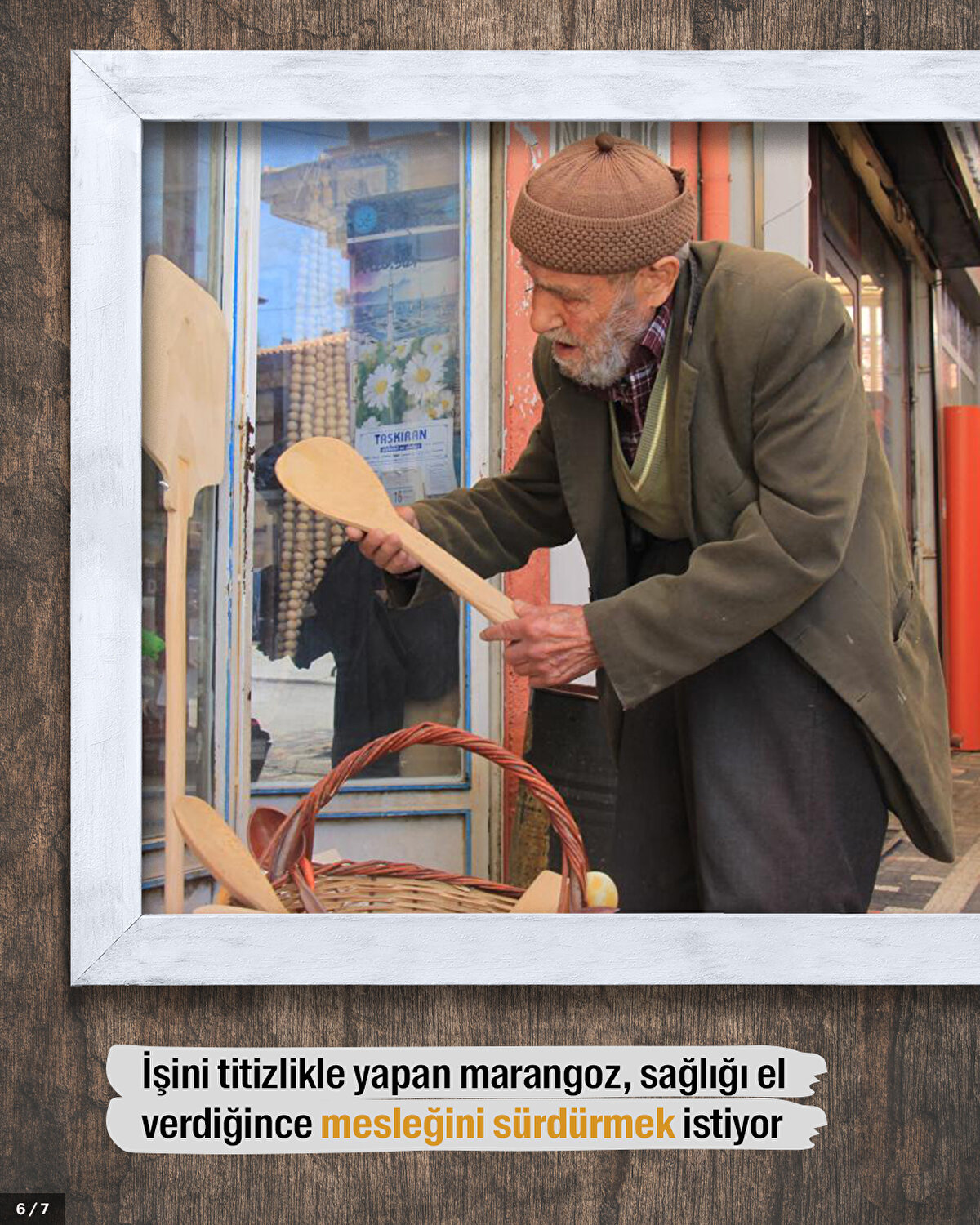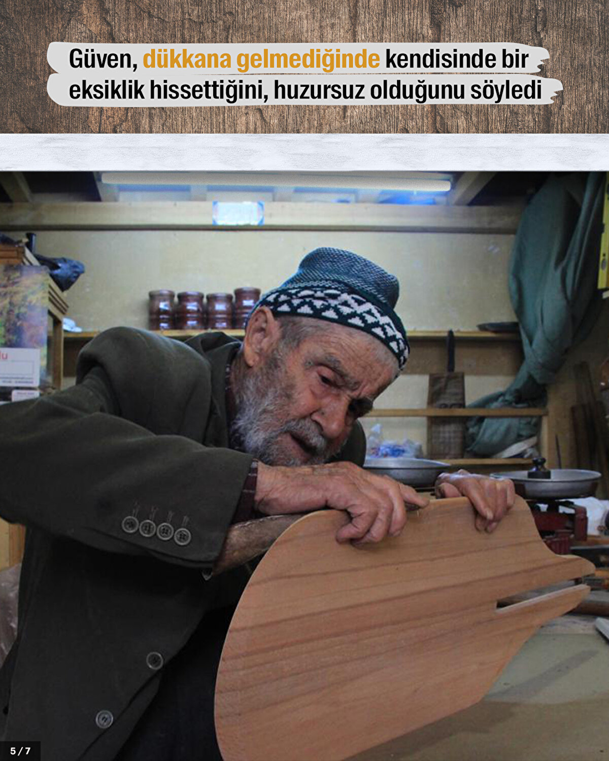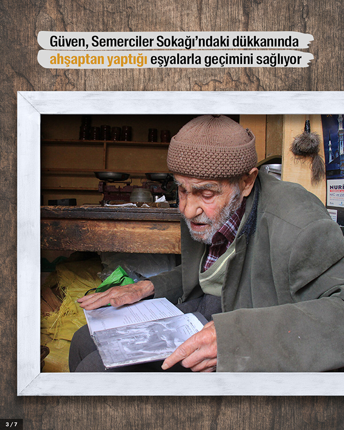 Karaman'da 74 yıldır marangozluk yapan 87 yaşındaki Halit Güven, müşterilerine ilk günkü gibi güler yüzüyle hizmet veriyor.