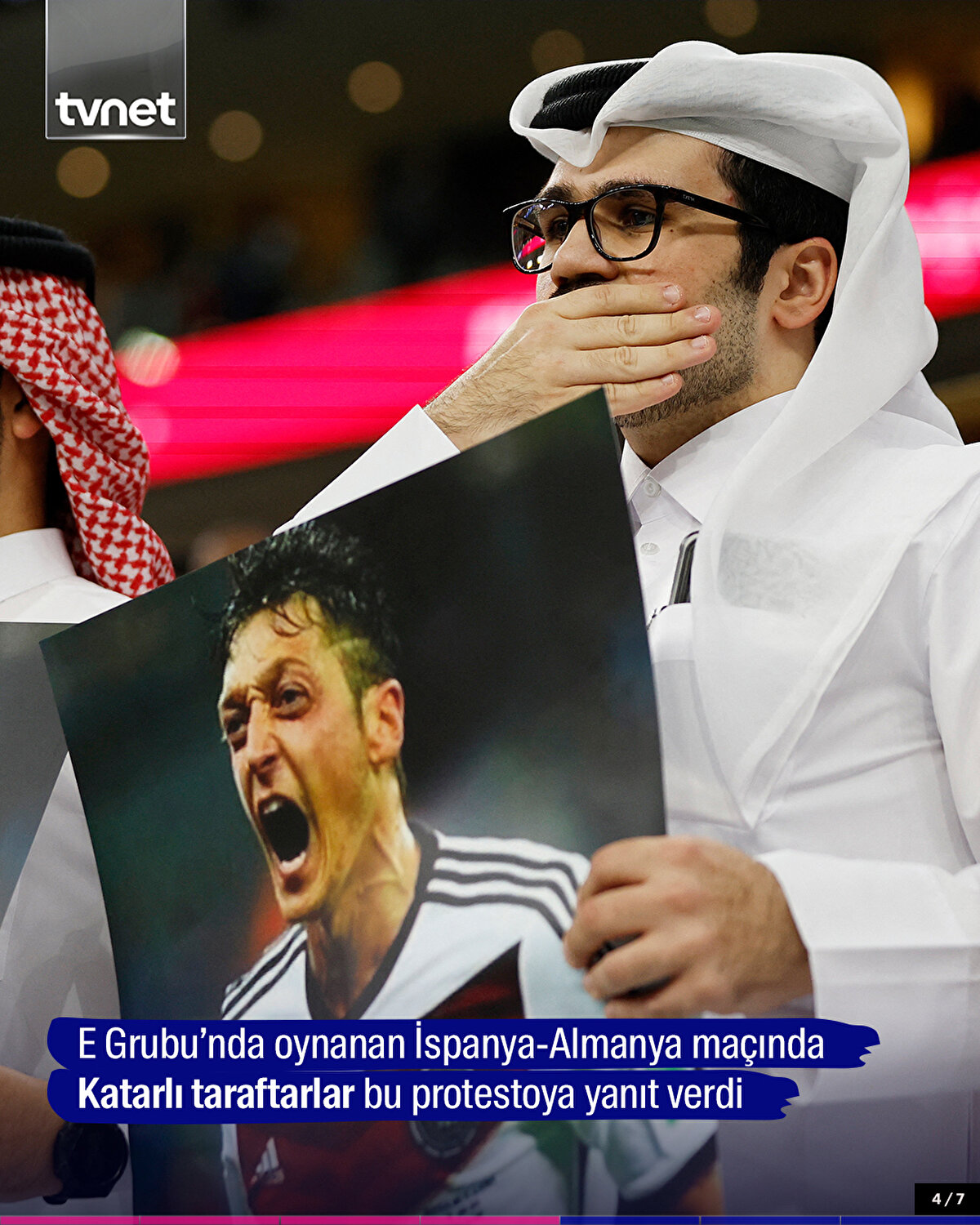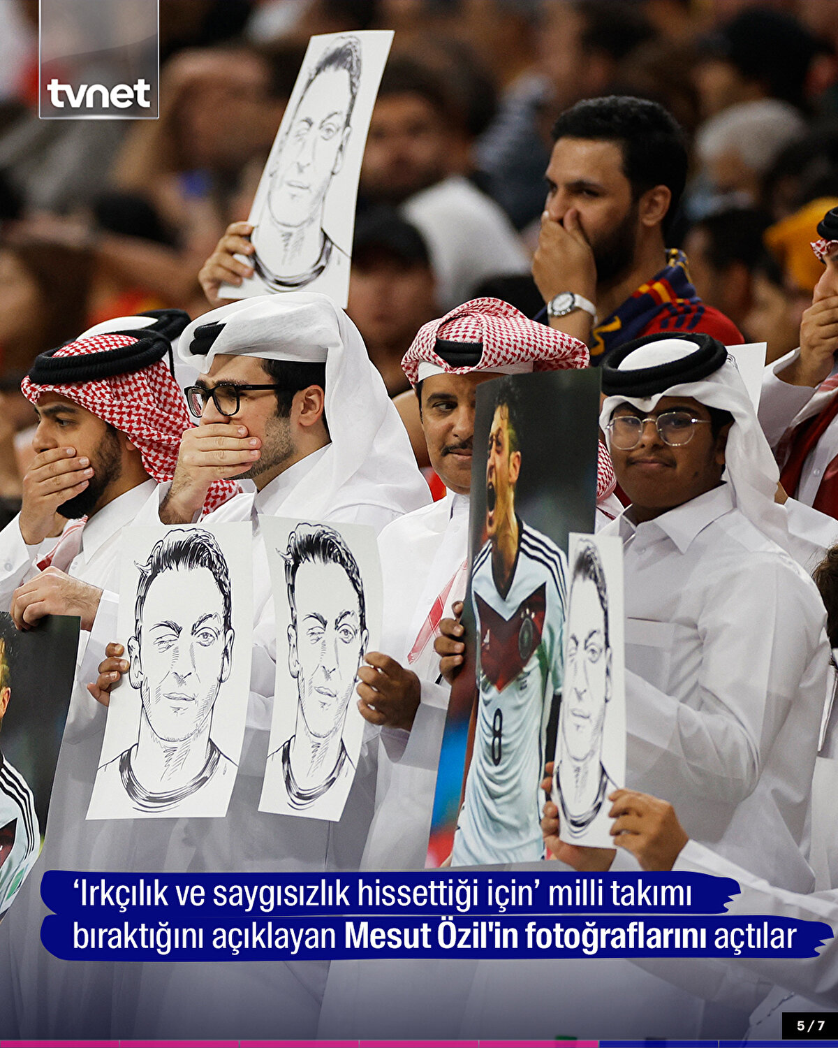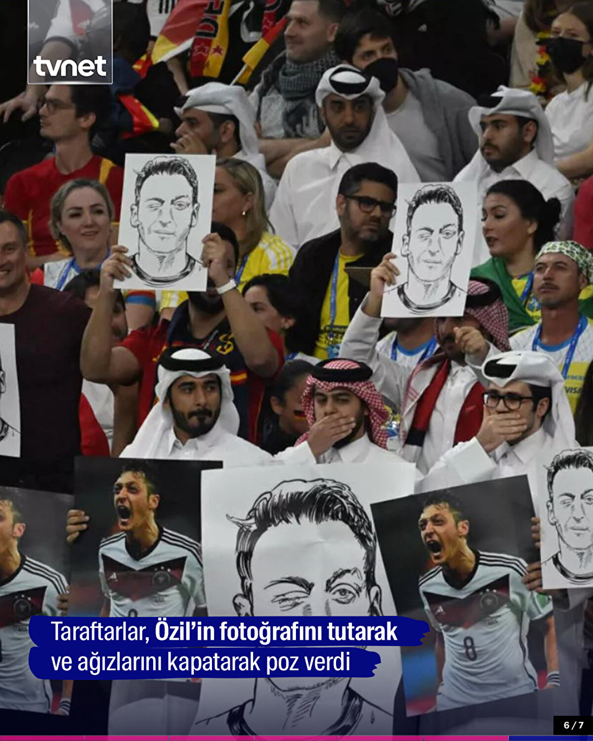 2022 FIFA Dünya Kupası E Grubu'nun ikinci haftasında İspanya ile Almanya'nın karşı karşıya geldiği maçta, bazı Katarlı taraftarlar, tribünde bir elleriyle ağızlarını kapatıp diğer ellerinde Mesut Özil görselleri taşıyarak Almanya'yı protesto etti.