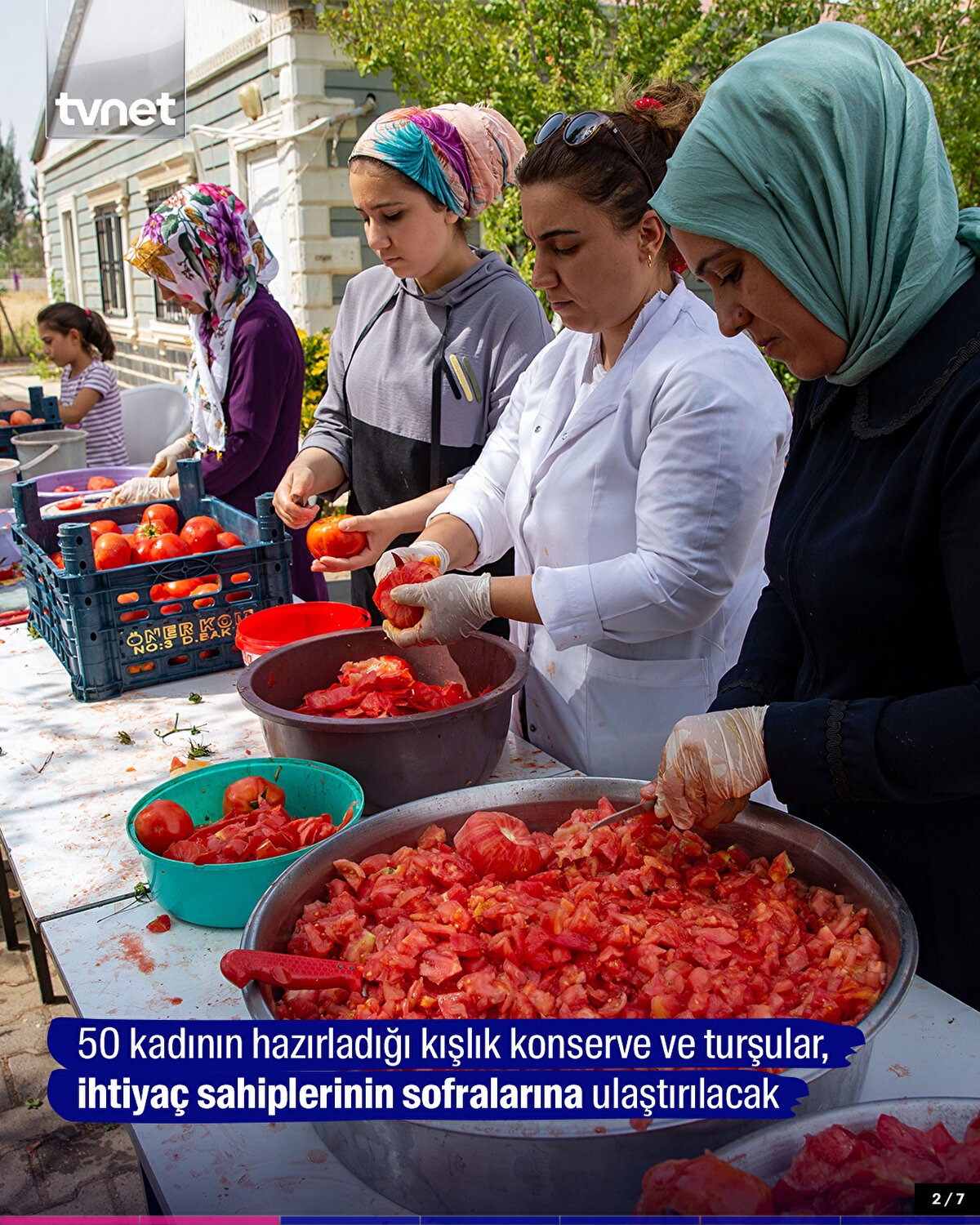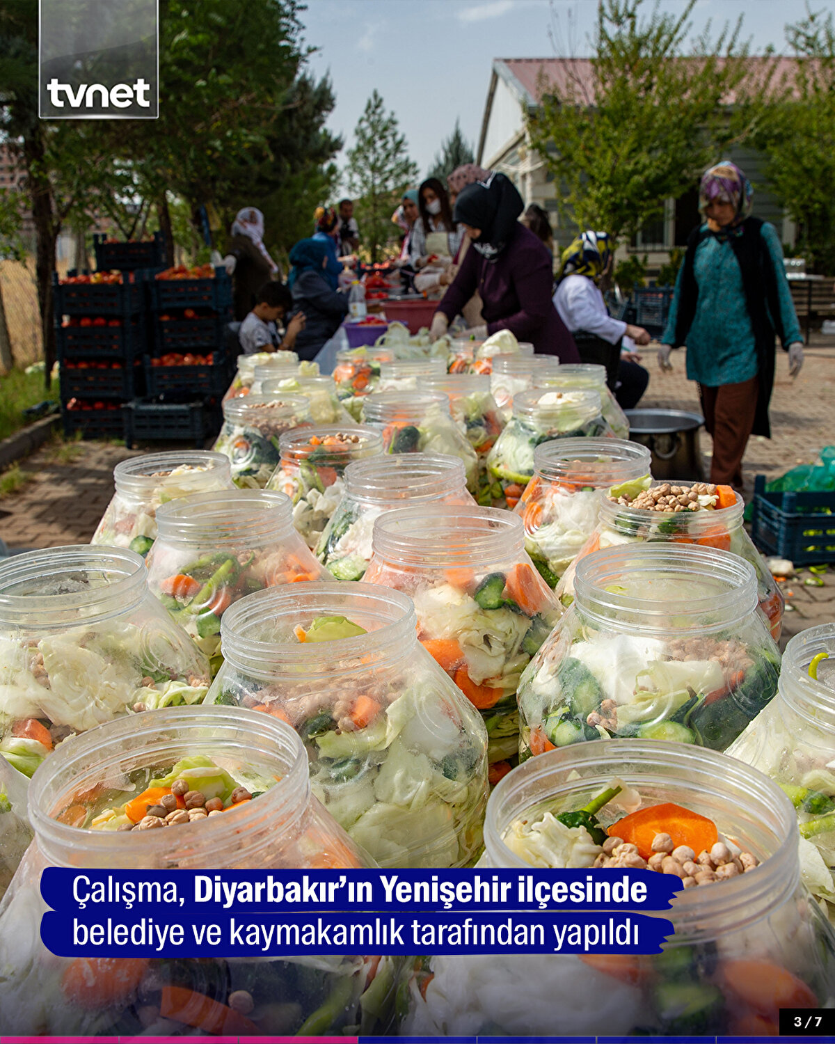 Diyarbakır'da aşçılık kursundaki eğitmenler ve kursiyerlerden oluşan 50 kadının katkısıyla hazırlanan kışlık konserve ve turşular, ihtiyaç sahibi ailelere gönderildi.
