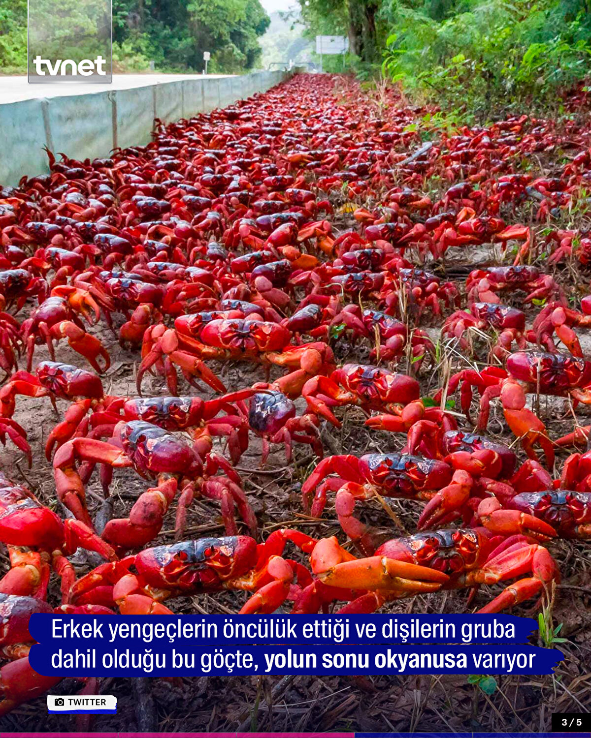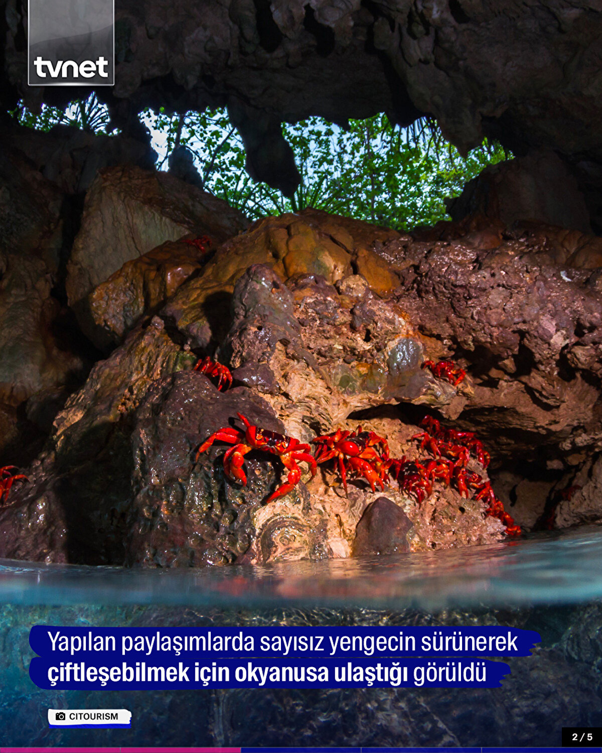 Avustralya'da okyanusa doğru göç etmeye başlayan kırmızı yengeçlerin renkli görüntüleri sosyal medyanın gündemine oturdu.