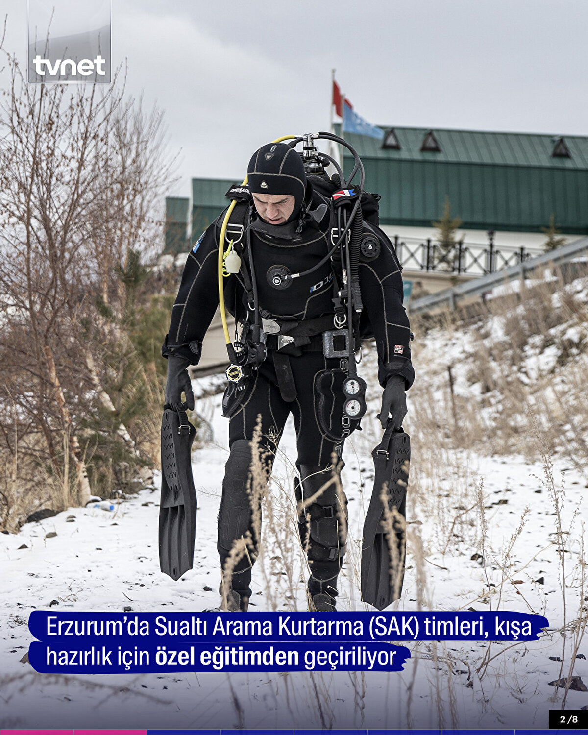 Erzurum Jandarma Komutanlığına bağlı komandolardan oluşan Sualtı Arama Kurtarma (SAK) timleri, kışın yaşanabilecek kayıp vakalarına karşı zorlu eğitimlerle hazırlık yapıyor.