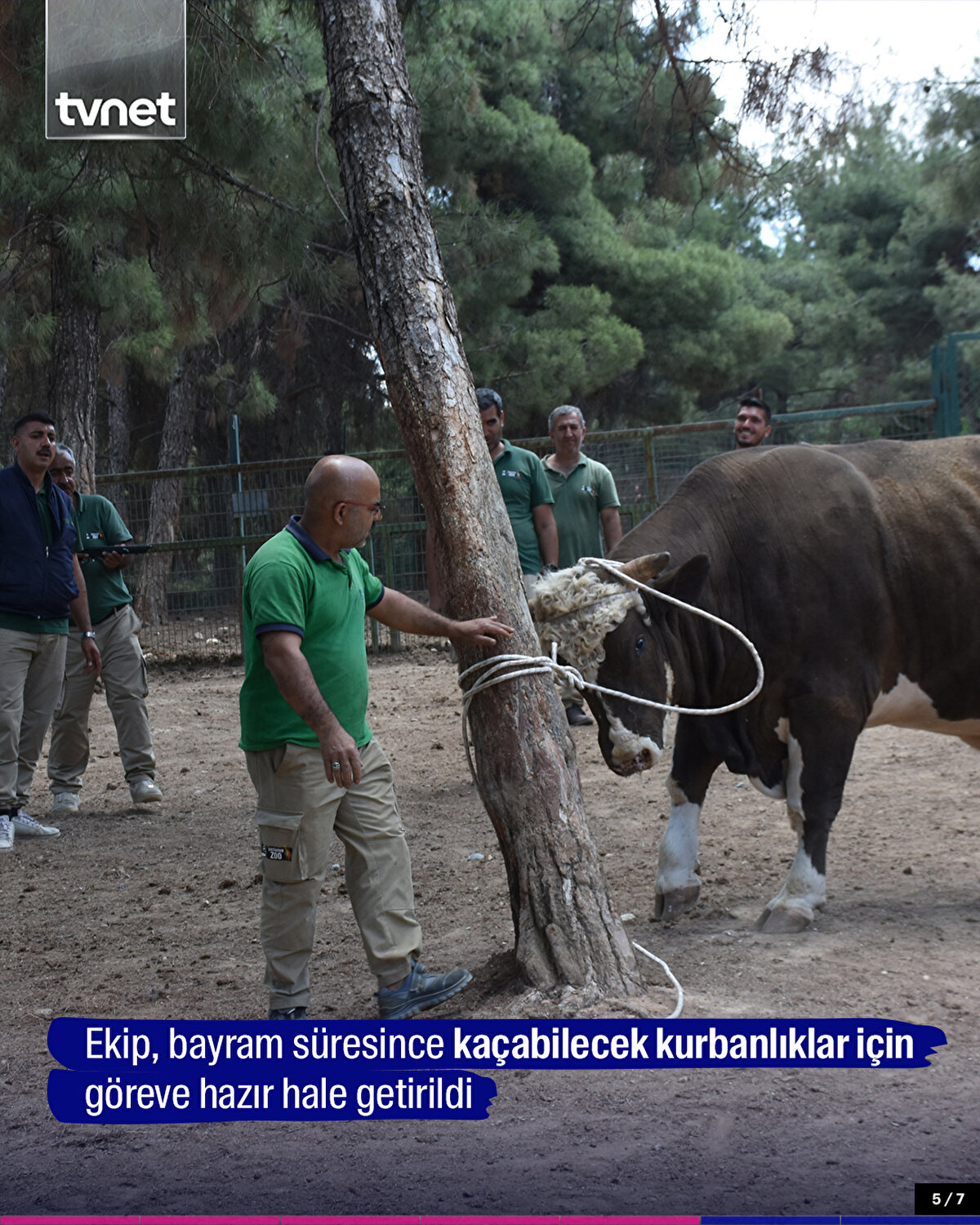 Gaziantep Büyükşehir Belediyesi bünyesinde kurulan 'kurban yakalama timi' Kurban Bayramı'nda iş başında olacak. Aralarında veteriner hekimin de bulunduğu 20 kişilik tim, yaklaşık 20 gündür Gaziantep Hayvanat Bahçesinde uyuşturucu iğne atan tüfek ve kementle antrenman yaparak, bayram süresince kaçabilecek kurbanlıklar için göreve hazır hale getirildi.