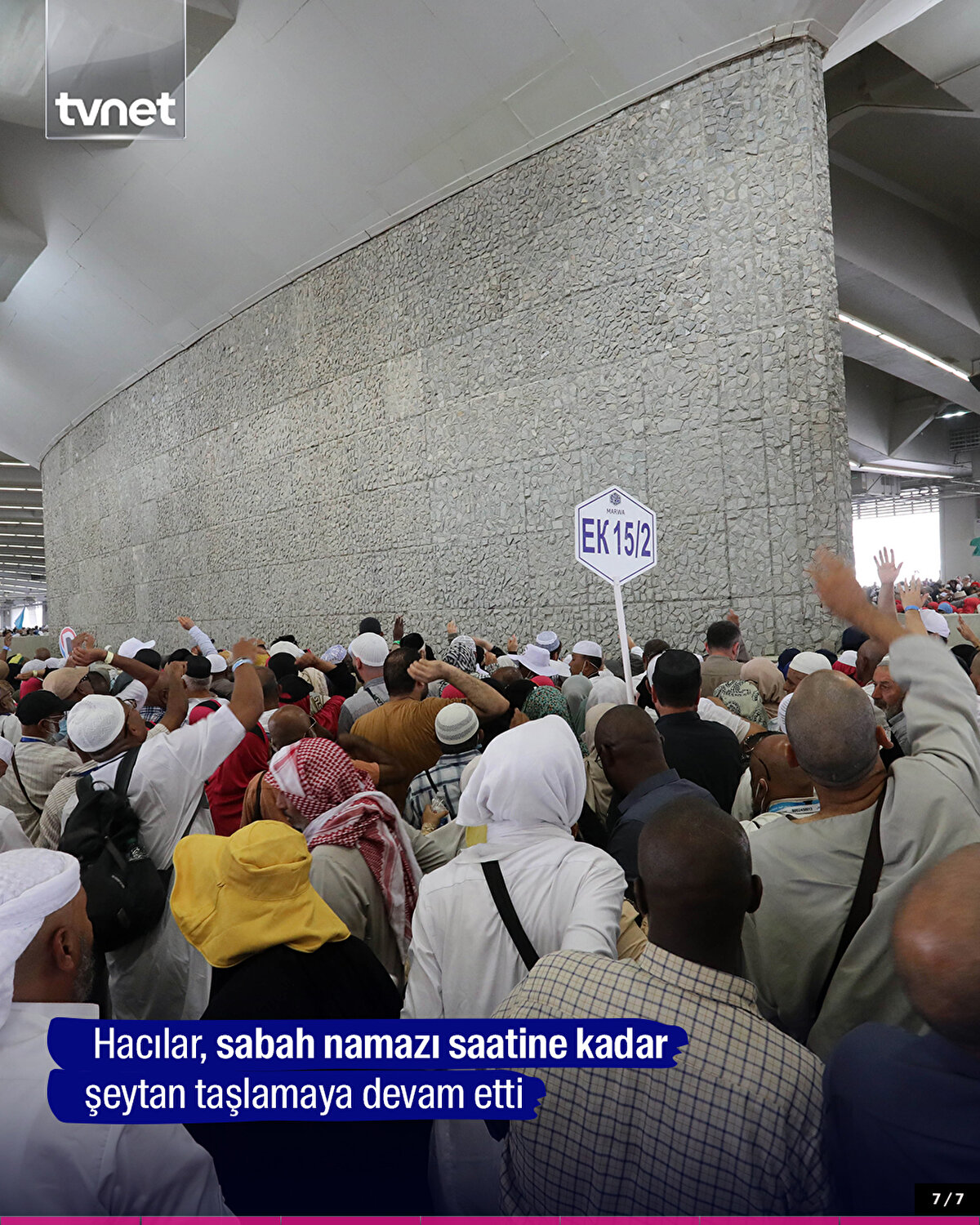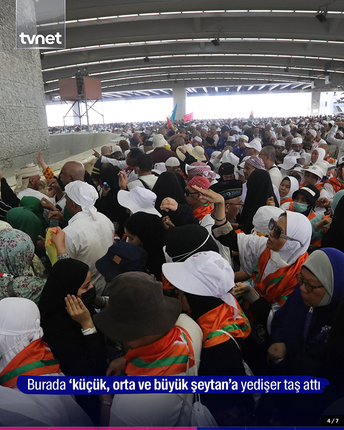 Kutsal topraklarda hac görevini yerine getiren yüz binlerce hacı, Kurban Bayramı'nın üçüncü gününde şeytan taşlamaya devam etti. Kafileler halinde Cemerat'a giden hacılar, burada 'küçük, orta ve büyük şeytan'a yedişer taş attı.
