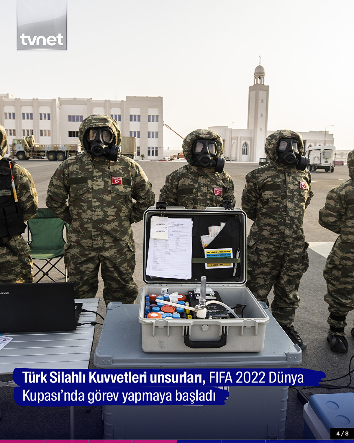 Türk Silahlı Kuvvetleri'nin Kimyasal, Biyolojik, Radyolojik ve Nükleer (KBRN) Savunma Bölüğü, FIFA 2022 Dünya Kupası'nda kimyasal ve nükleer tehdide karşı etkin rol alıyor.