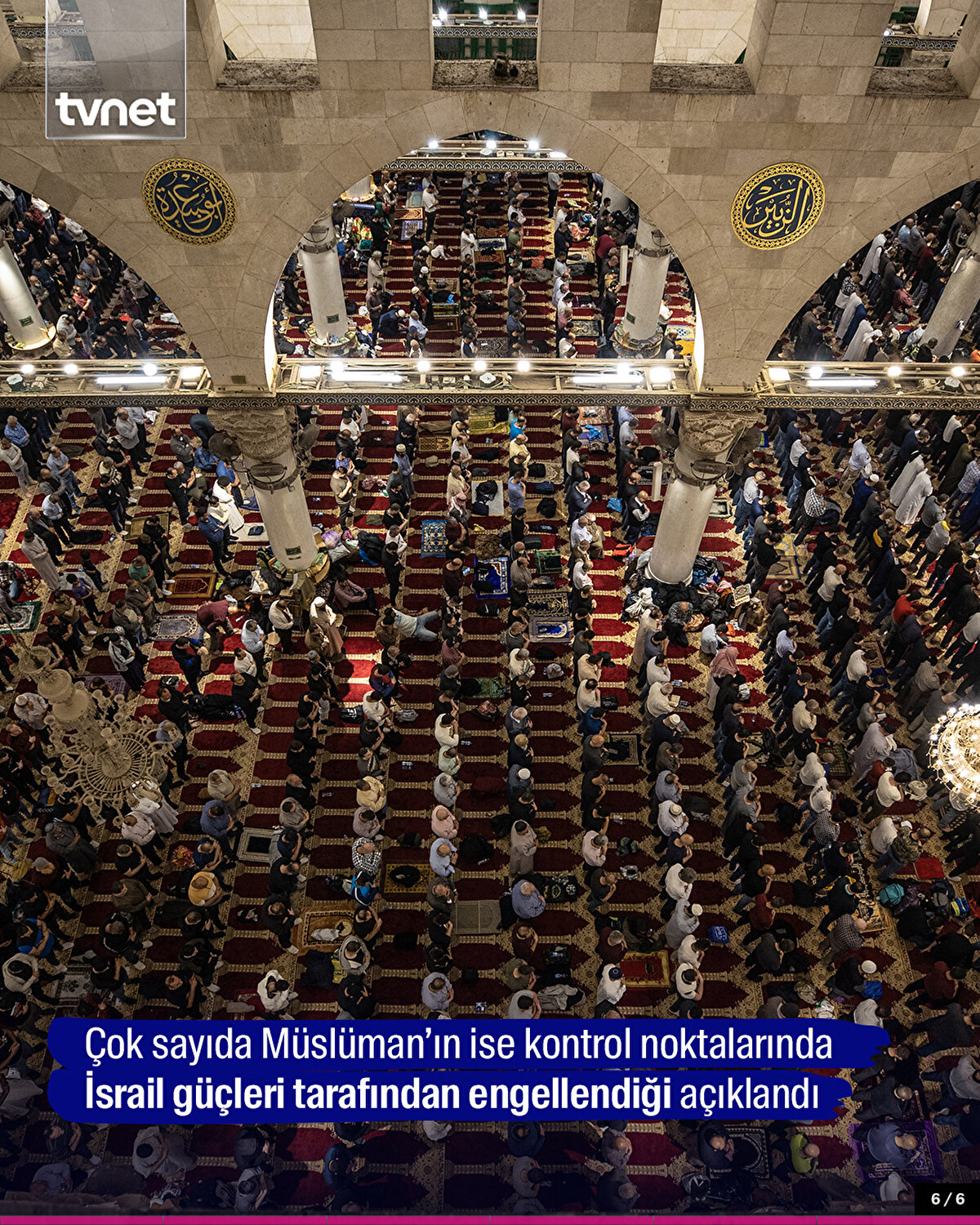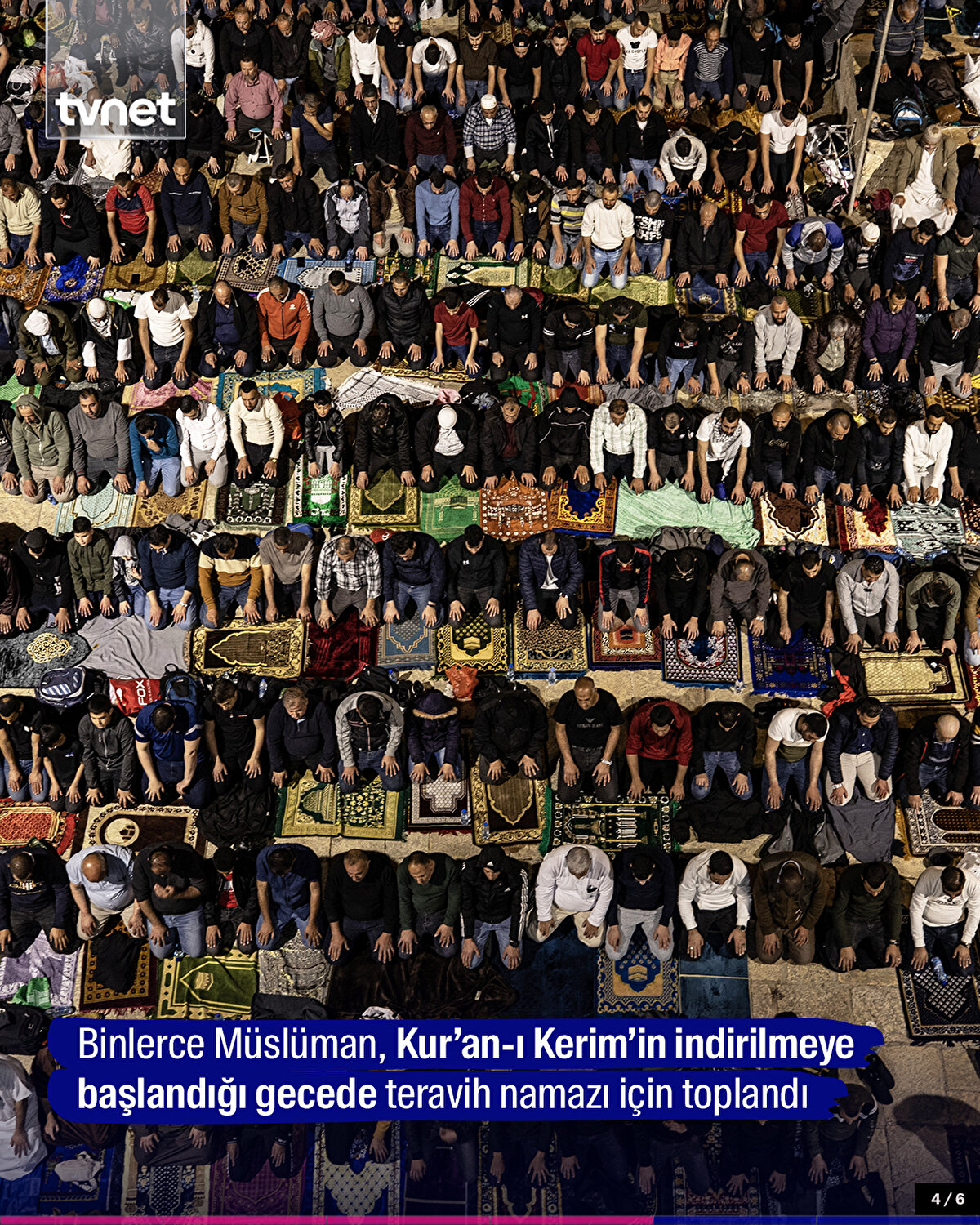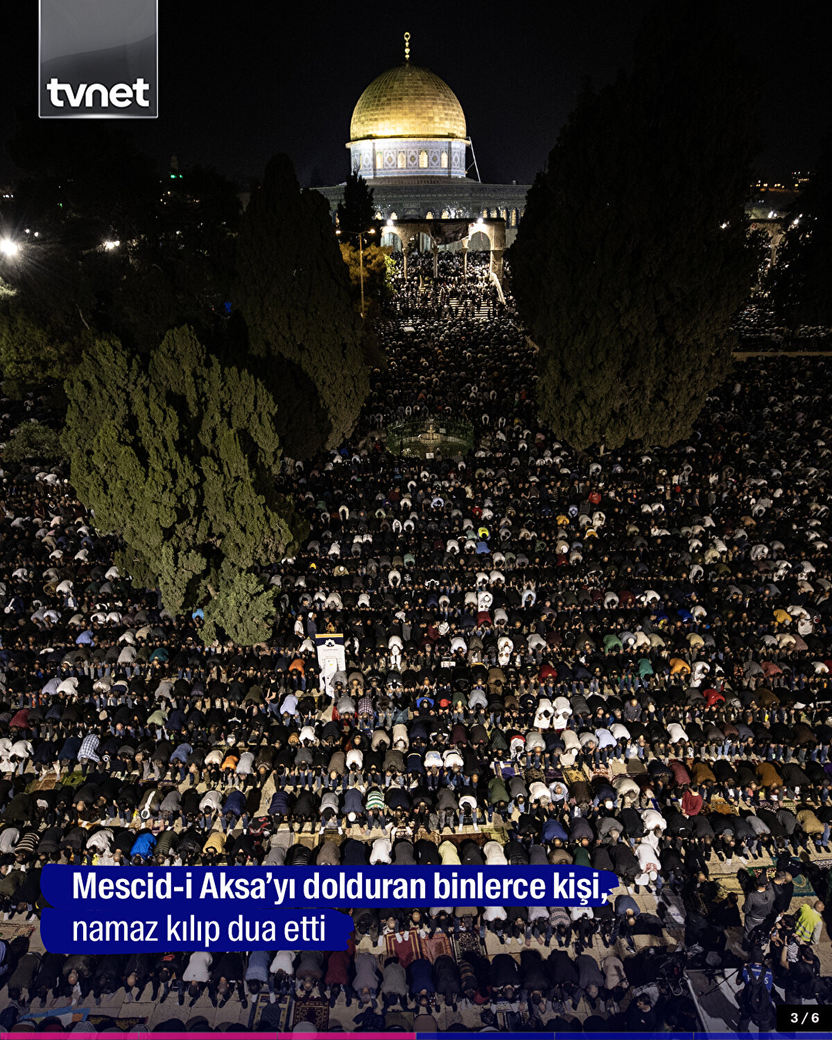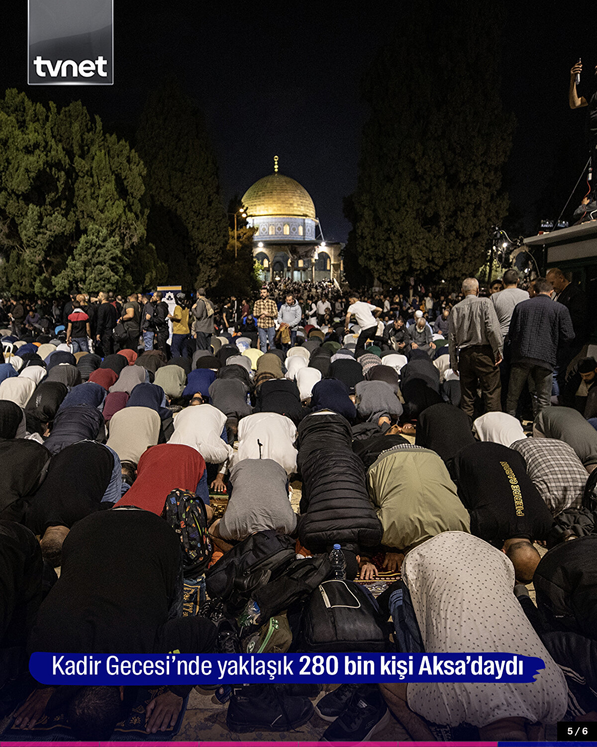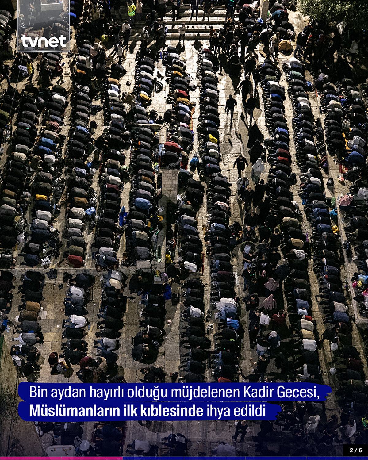 Kur'an-ı Kerim'in indirilmeye başlandığı ve 'bin aydan hayırlı' olduğu müjdelenen Kadir Gecesi, Kudüs'te ihya edildi. Müslümanların ilk kıblesi olan Mescid-i Aksa'yı dolduran binlerce kişi, namaz kılıp dua etti.