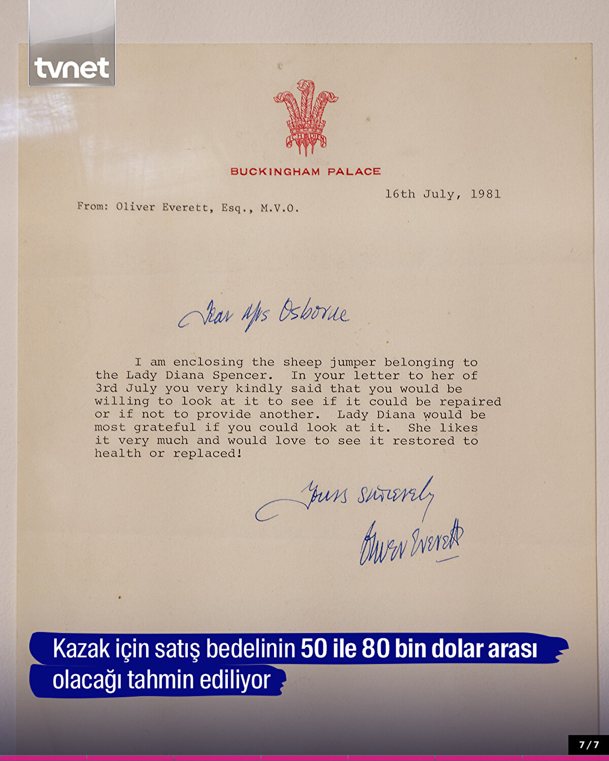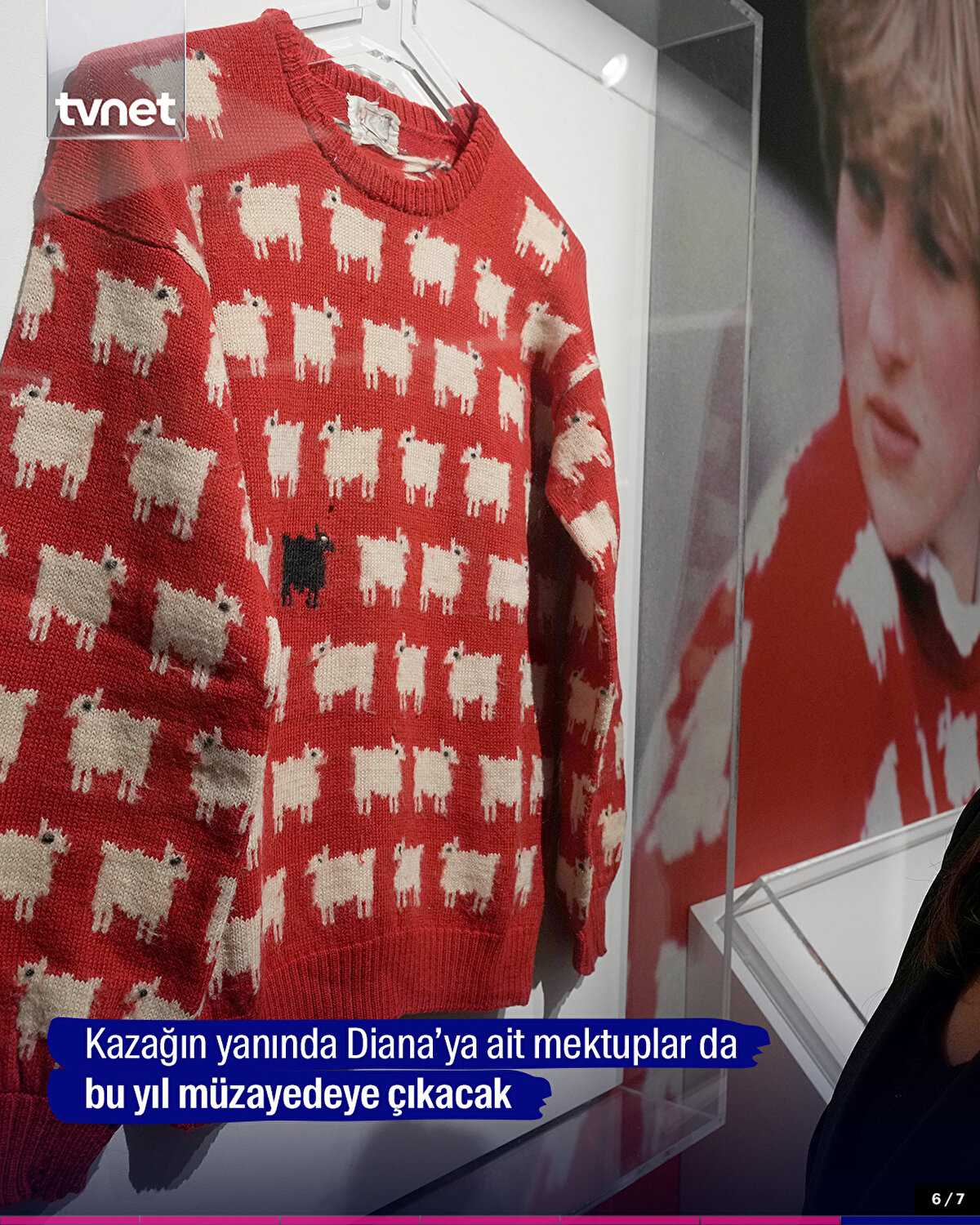 İngiltere'nin başkenti Londra'da bulunan Sotheby Müzayede Evi'nde açık artırmaya sunulacak olan Prenses Diana'nın ünlü koyunlu kazağı, müzayede evinde sergilenmek için hazırlandı. Kazak, 50 ile 80 bin dolar arası satış tahmini ile açık artırmada olacak.
