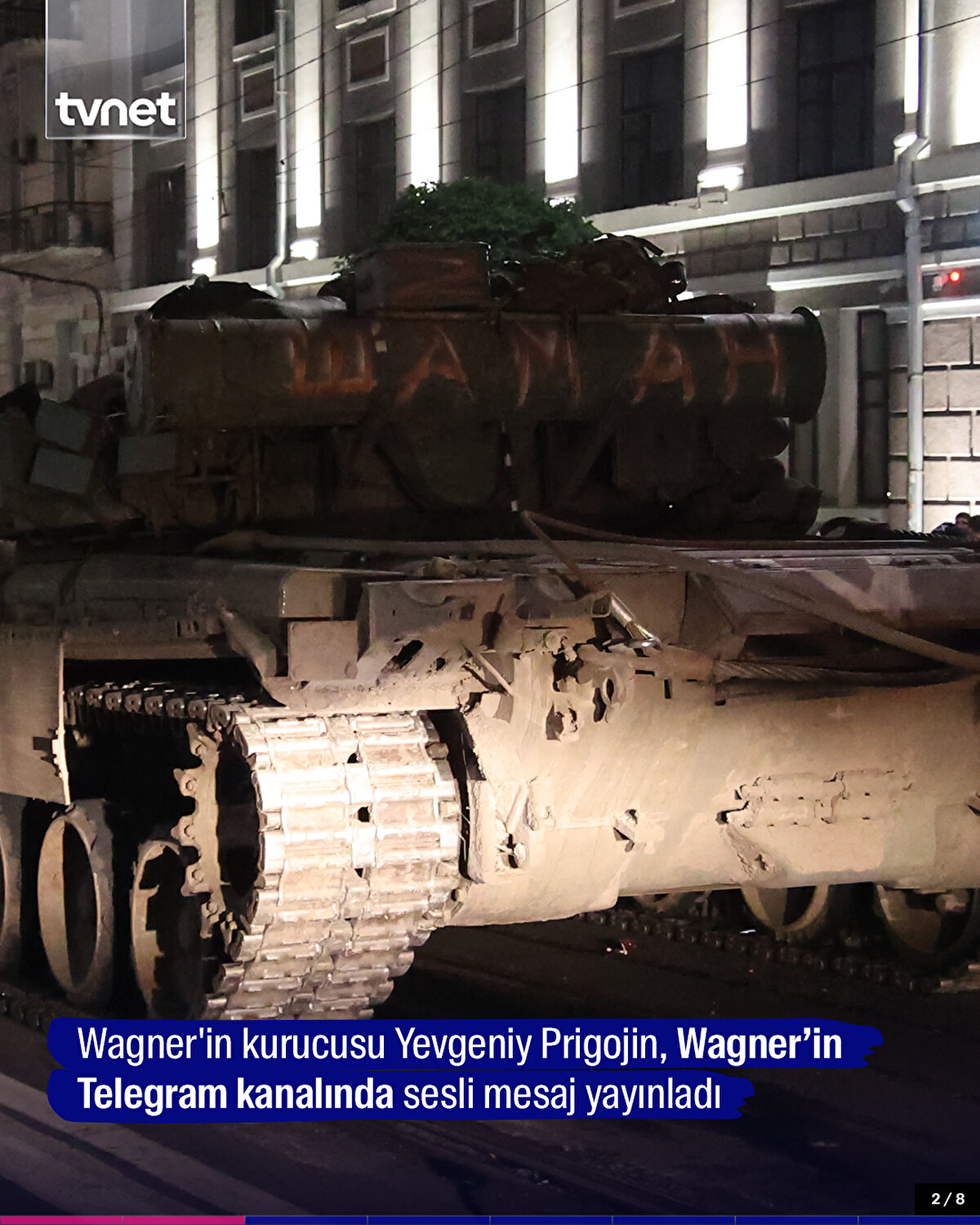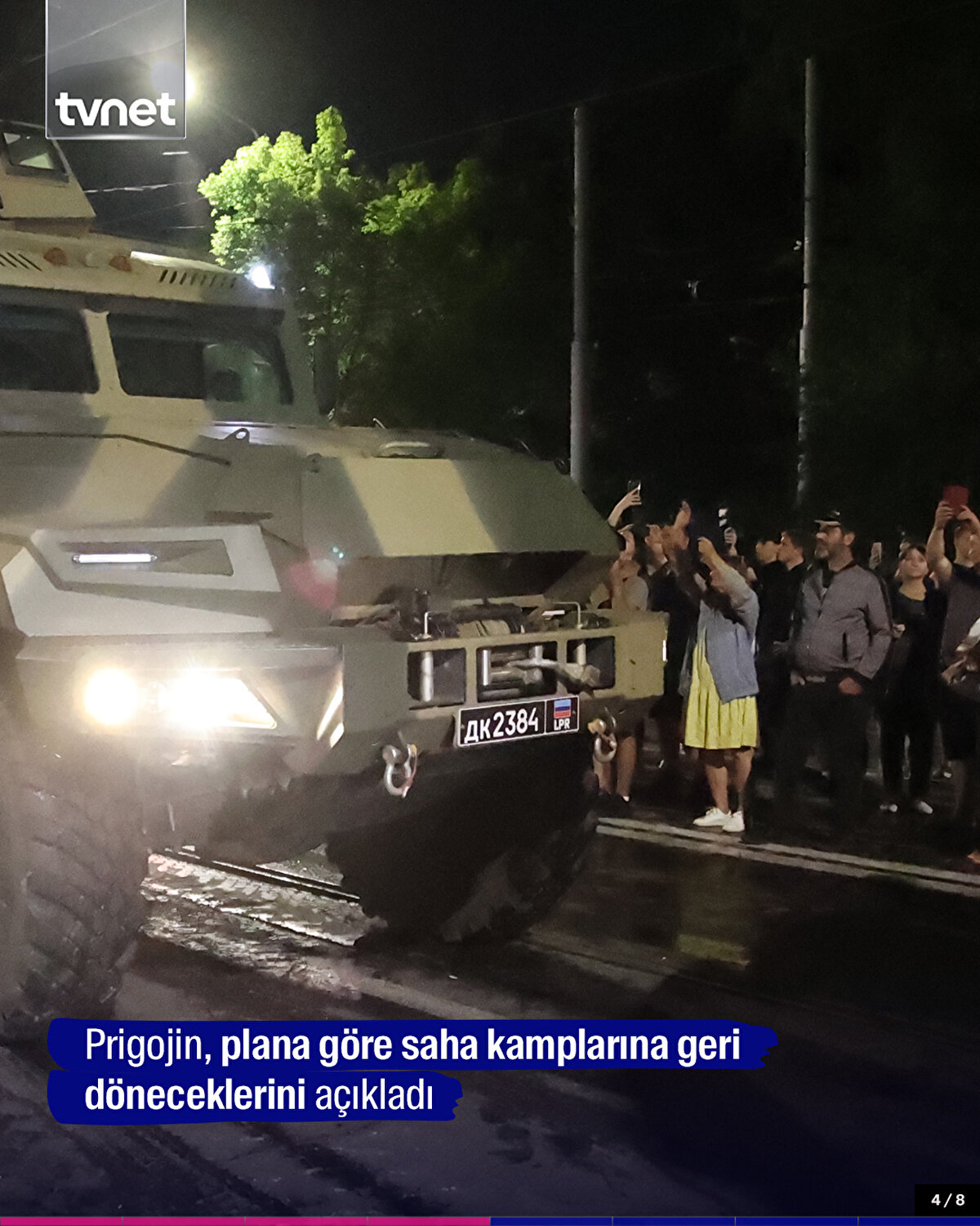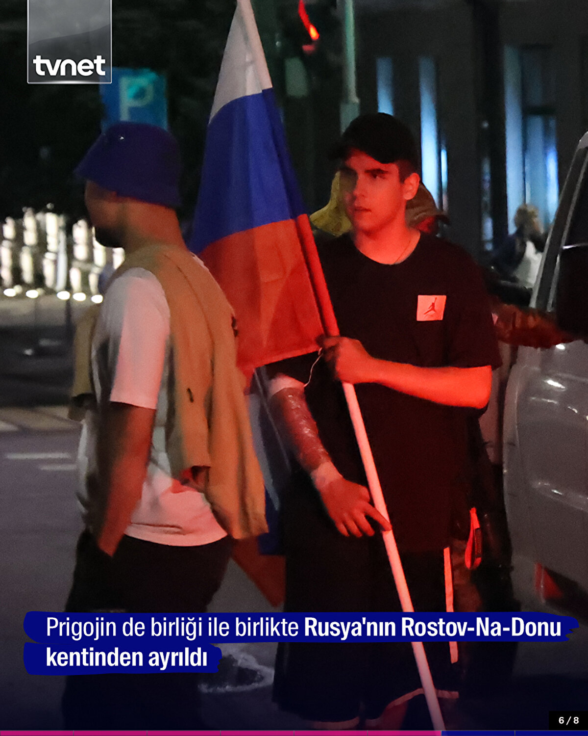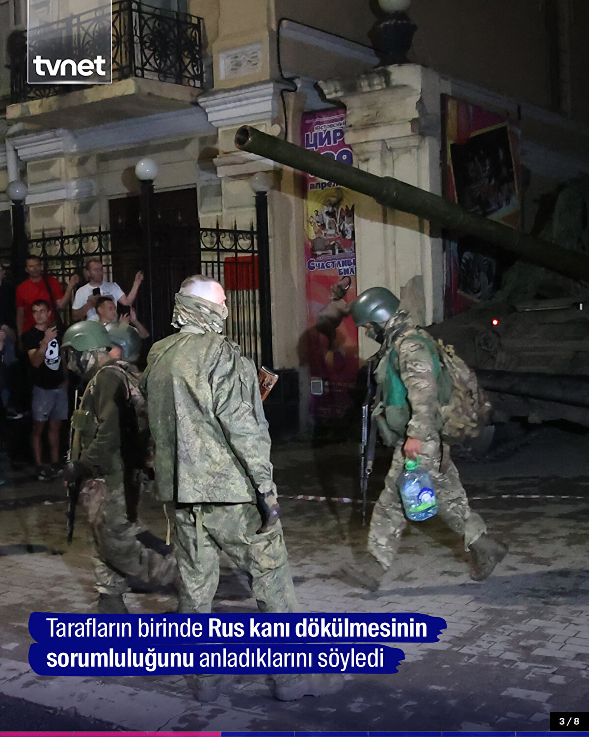 Rus güvenlik şirketi Wagner'in kurucusu Yevgeniy Prigojin, birliği ile birlikte Rusya'nın Rostov-Na-Donu kentinden ayrıldı. Prigojin, “Taraflardan birinde Rus kanı dökülecek olmasının tüm sorumluluğunu anlayarak konvoylarımızı geri çeviriyor ve plana göre saha kamplarına geri dönüyoruz” ifadesini kullandı.