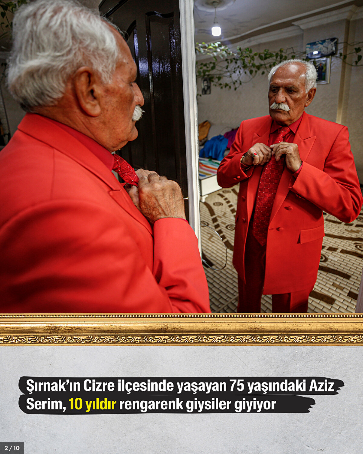Şırnaklı 75 yaşındaki Aziz Serim, 10 yıldır rengarenk giysiler giyiyor. Aziz Amca'nın renkli kıyafet kombinleri, çevresindekiler tarafından da ilgi görüyor.