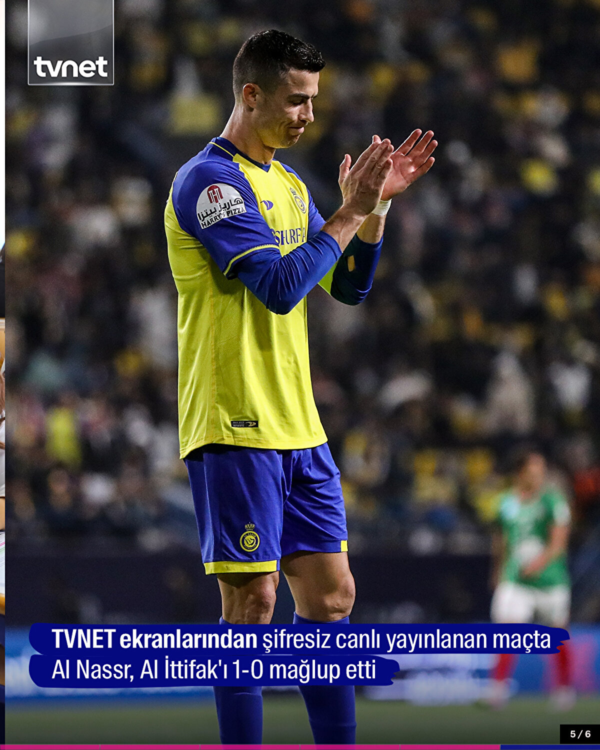Suudi Arabistan Pro Ligi 14. haftasında TVNET ekranlarından şifresiz canlı yayınlanan maçta Al Nassr, Al İttifak'ı 1-0 mağlup etti. Ronaldo, Al Nassr formasıyla ilk lig maçına çıktı. Lig heyecanı TVNET'te devam edecek.