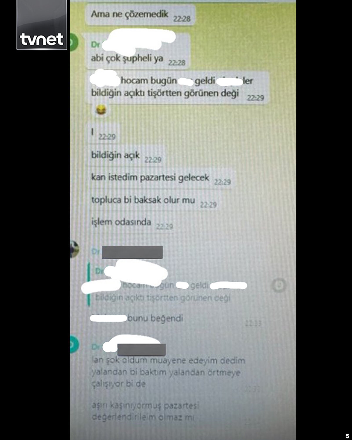 Söz konusu konuşmalarda doktorların kadın hastaları taciz ettikleri, "Toplu bakalım" ifadeleri kullandıkları görüldü.