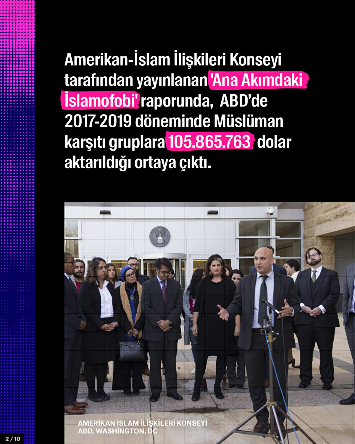 ABD'de 2017-2019 döneminde Müslüman karşıtı gruplara 106 milyon dolara yakın kaynak aktarıldığı ortaya çıktı. Amerikan İslam İlişkileri Konseyince (CAIR) yayınlanan 'Ana Akımda İslamofobi' adlı raporda, ülkedeki Müslüman karşıtı gruplara yapılan finansal yardımlar derlendi.