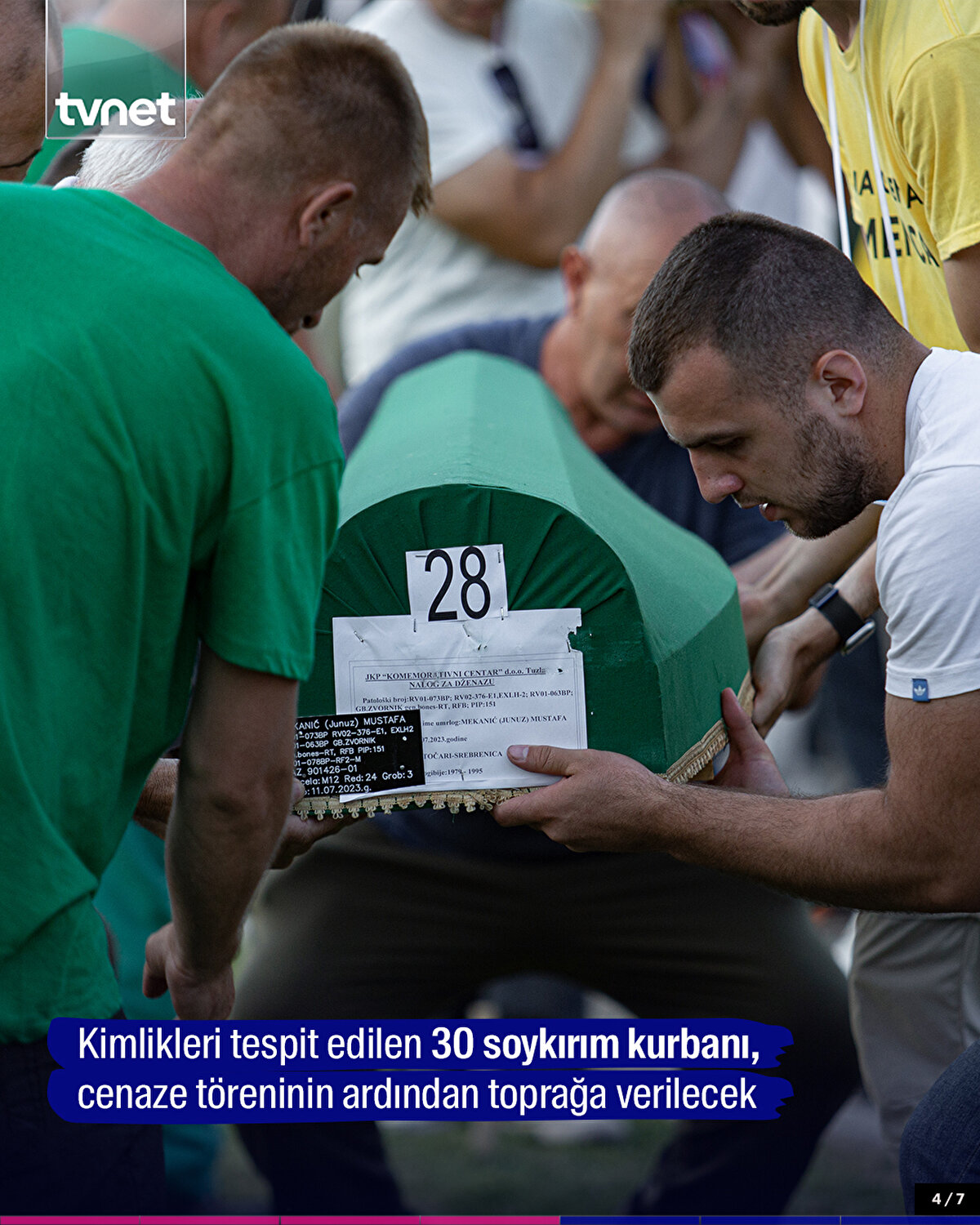 Bosna Hersek'in doğusundaki Srebrenitsa'da Temmuz 1995'te yapılan soykırımda öldürülen ve kimlikleri tespit edilen 30 soykırım kurbanı daha bugün düzenlenecek cenaze töreninin ardından toprağa verilecek. Kurbanların yeşil çuhaya sarılı tabutları, defnedilecekleri Potoçari Anıt Mezarlığı'na taşındı.