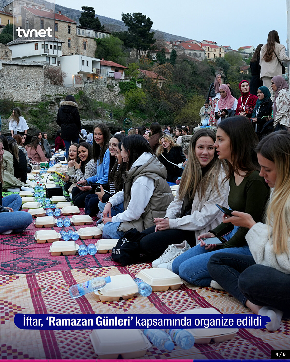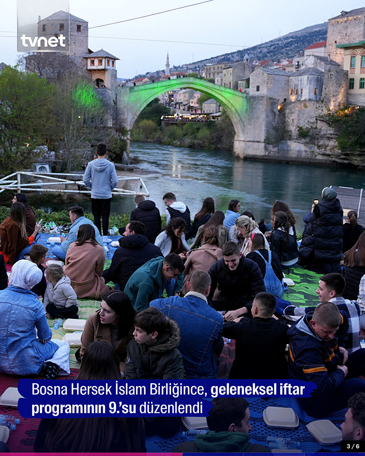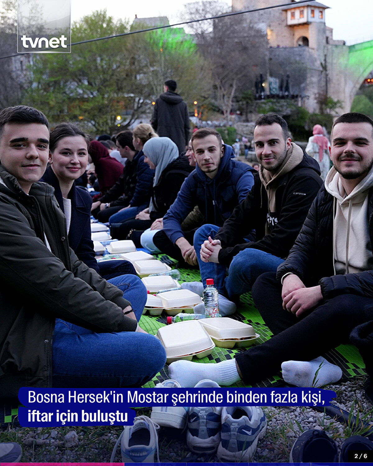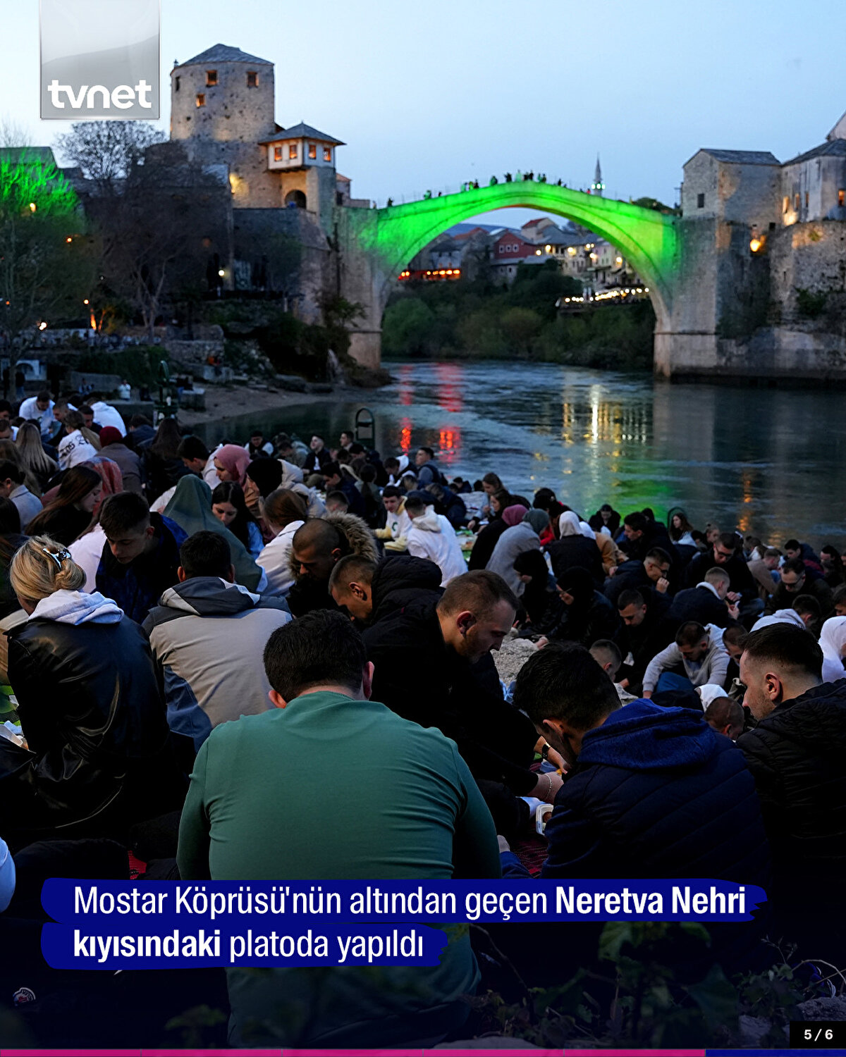 Bosna Hersek'in Mostar şehrinde binden fazla kişi, tarihi Mostar Köprüsü'nün yakınında düzenlenen iftara katıldı. 1300 kişinin katıldığı iftar, Mostar Köprüsü'nün altından geçen Neretva Nehri kıyısındaki platoda yapıldı.