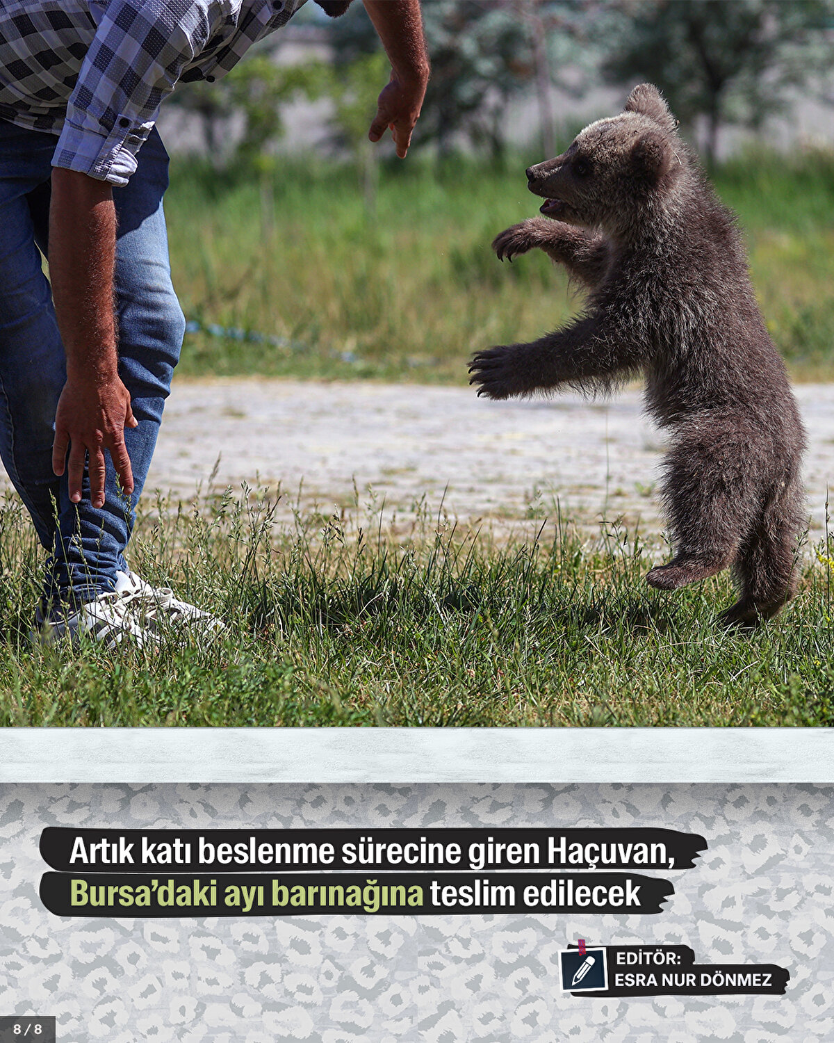 Sevimli yavru ayı 'Haçuvan' ile tanışın. Hakkari Çukurca'da annesinden ayrı düştüğü için yeterince beslenemeyen ve tedavisi için Van'a getirilen ayı yavrusu, yaşamını özel bir alanda sürdürebilmesi için Bursa'daki ayı barınağına gönderilecek.
