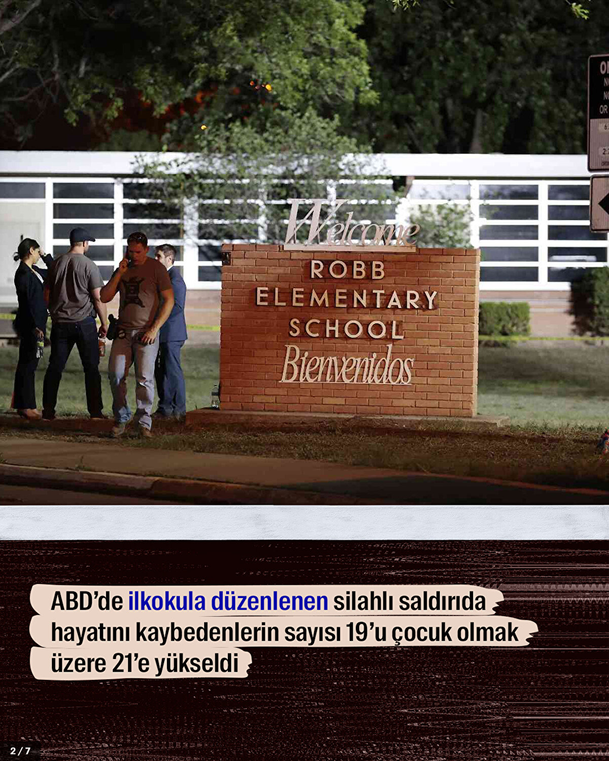 ABD'nin Teksas eyaletinde yer alan Robb İlköğretim Okulu'na silahlı saldırı düzenlendi. Saldırıda 19'u çocuk olmak üzere 21 kişi hayatını kaybetti.