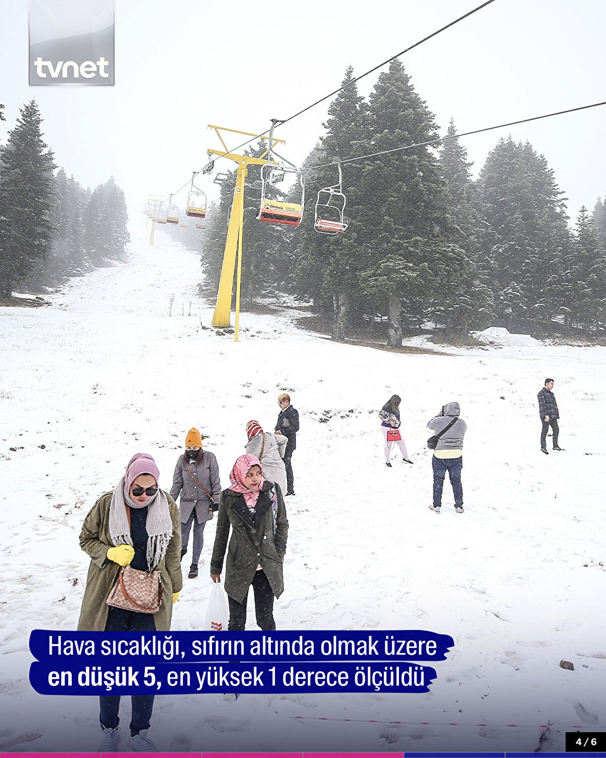 Türkiye'nin önemli kış merkezlerinden Uludağ'da aralıklarla kar yağışı etkili oluyor.