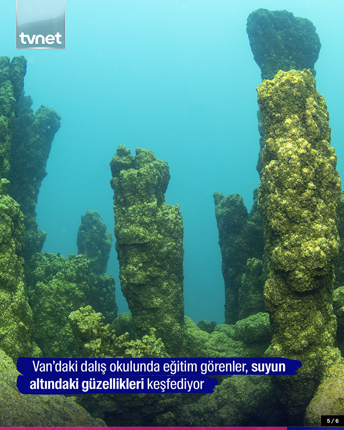 Van'da dalış turizminin geliştirilmesi kapsamında kurulan dalış okulunda eğitim alanlar, Van Gölü'nün derinliklerine dalarak suyun altındaki güzellikleri keşfediyor.