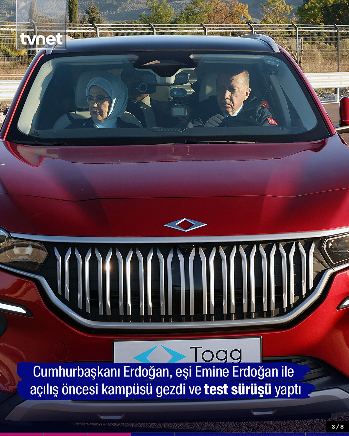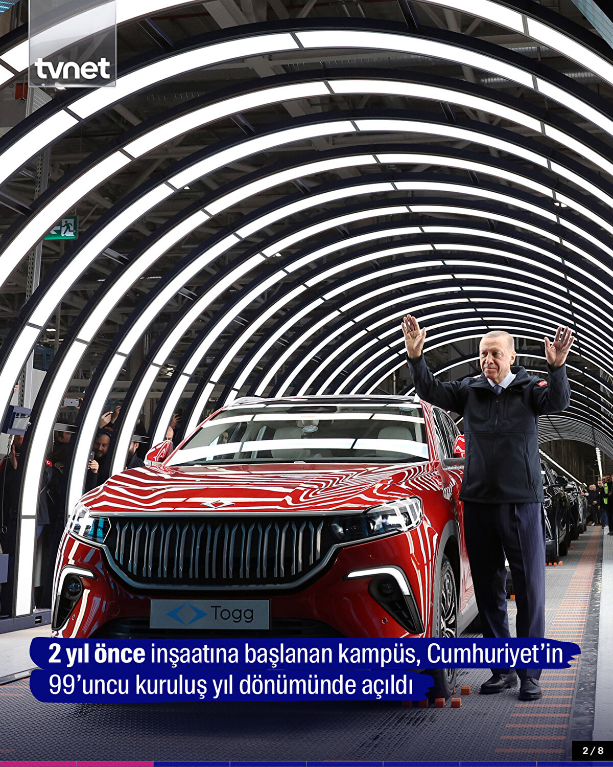 Türkiye'nin vizyon projeleri arasında yer alan yerli otomobil Togg'un seri üretiminin yapılacağı Gemlik Kampüsü'nde açılış töreni düzenlendi. Seri üretim bandından inen Togg'u, Cumhurbaşkanı Erdoğan kullandı.