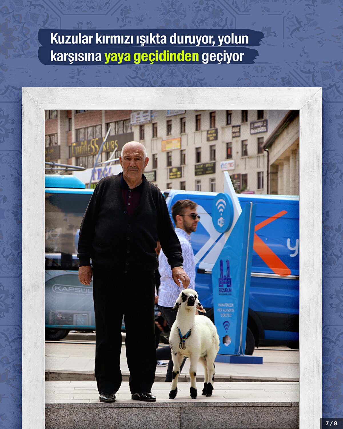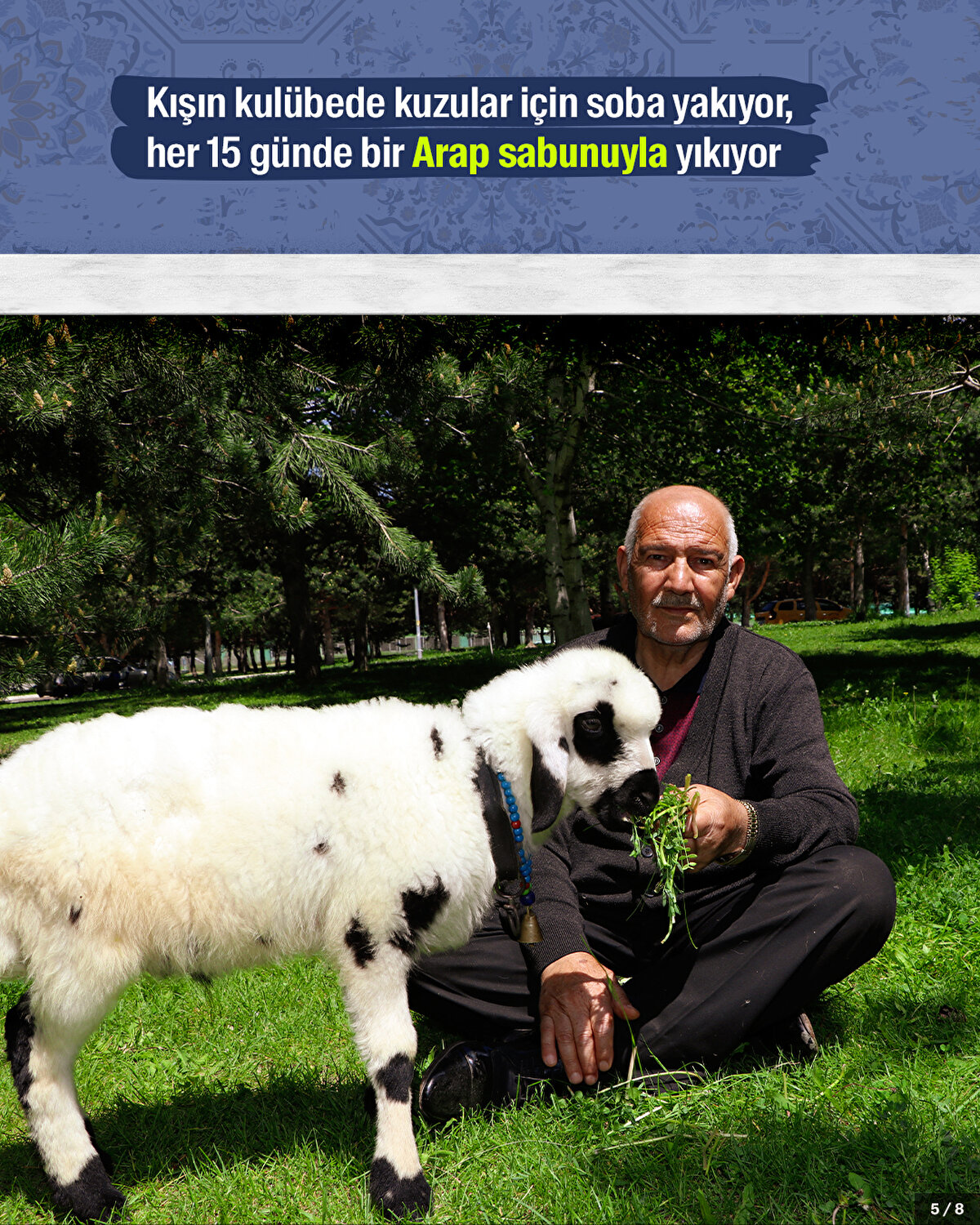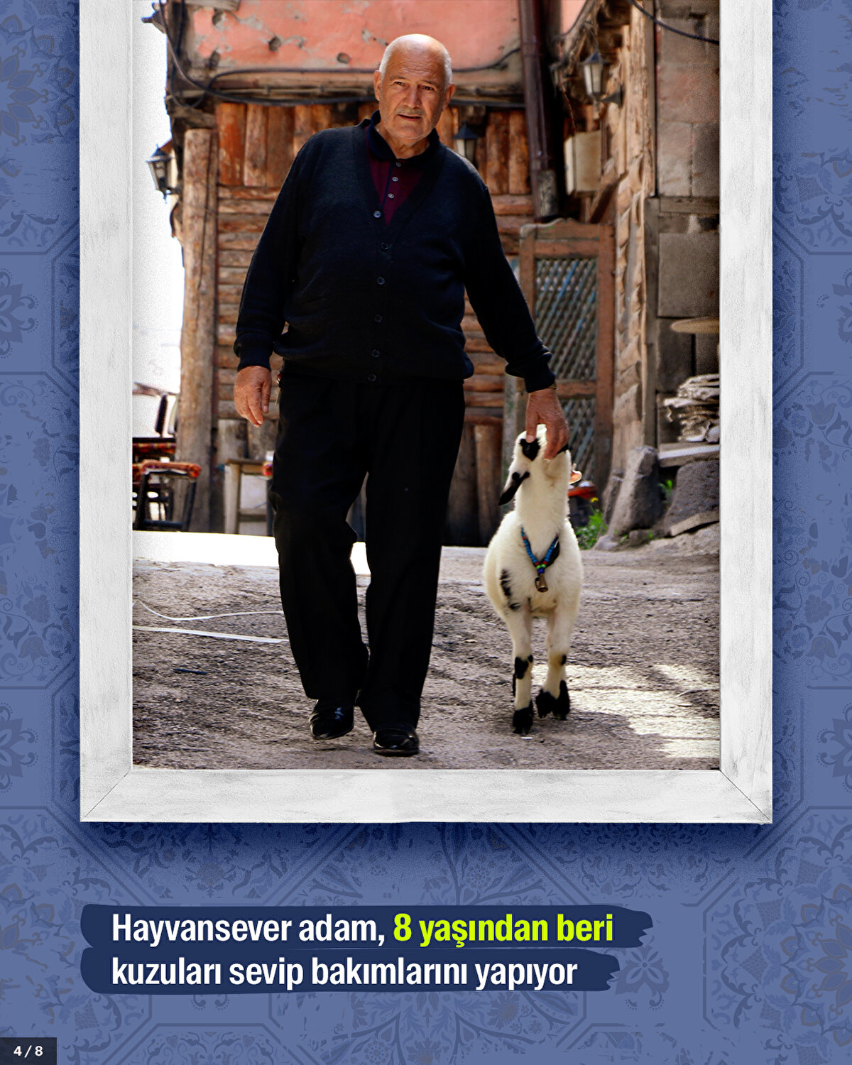 Erzurum'da çocukluğundan beri sütle besleyip yetiştirdiği kuzularla cadde ile sokaklarda gezen 'kuzulu dede' Selami Yılmaz'ı hayvanları bir an bile olsun yalnız bırakmıyor.