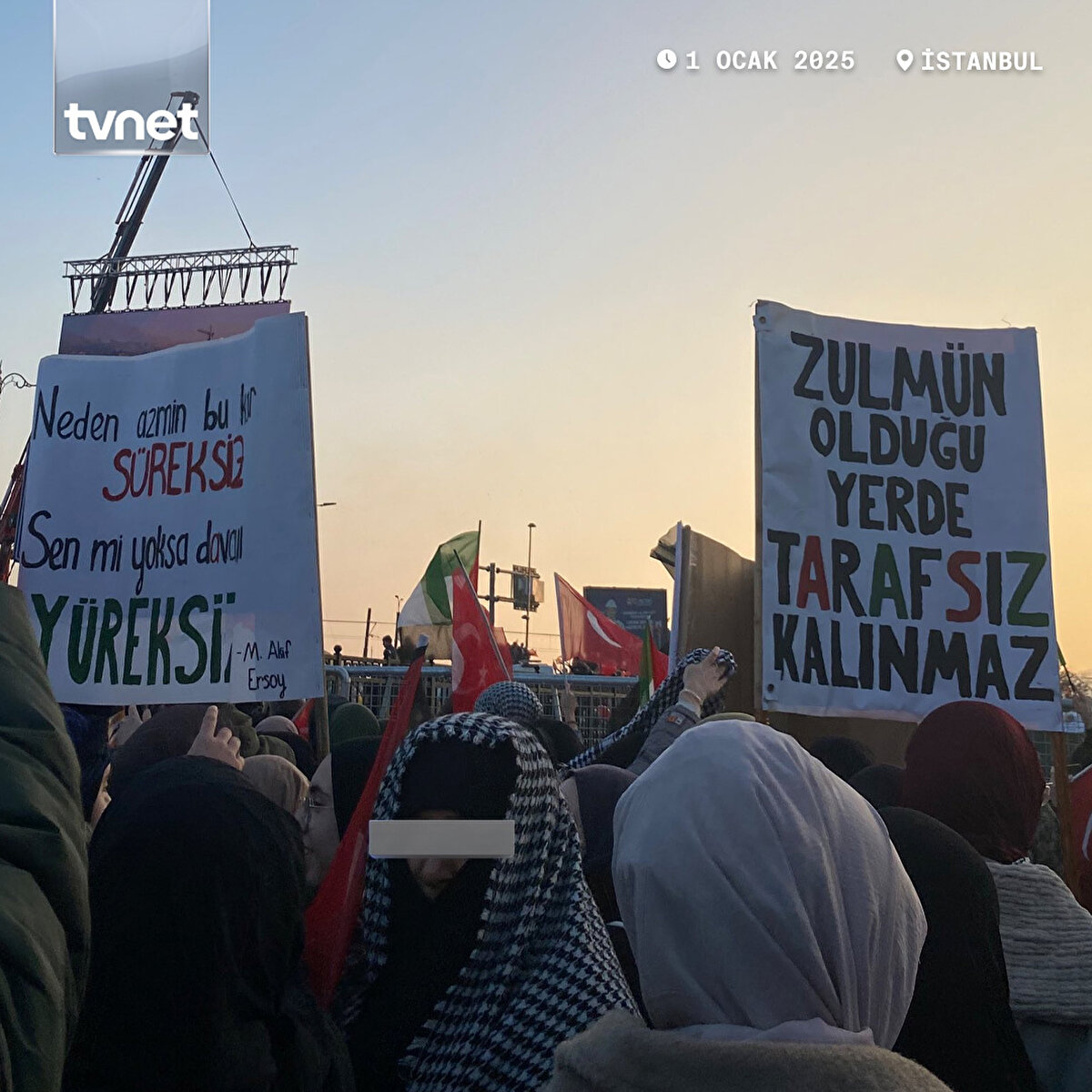Milli İrade Platformunca, Filistin'deki katliamın durdurulması amacıyla yaklaşık 400 sivil toplum kuruluşunun iştirakiyle Galata Köprüsü'nde düzenlenen eylem sona erdi.