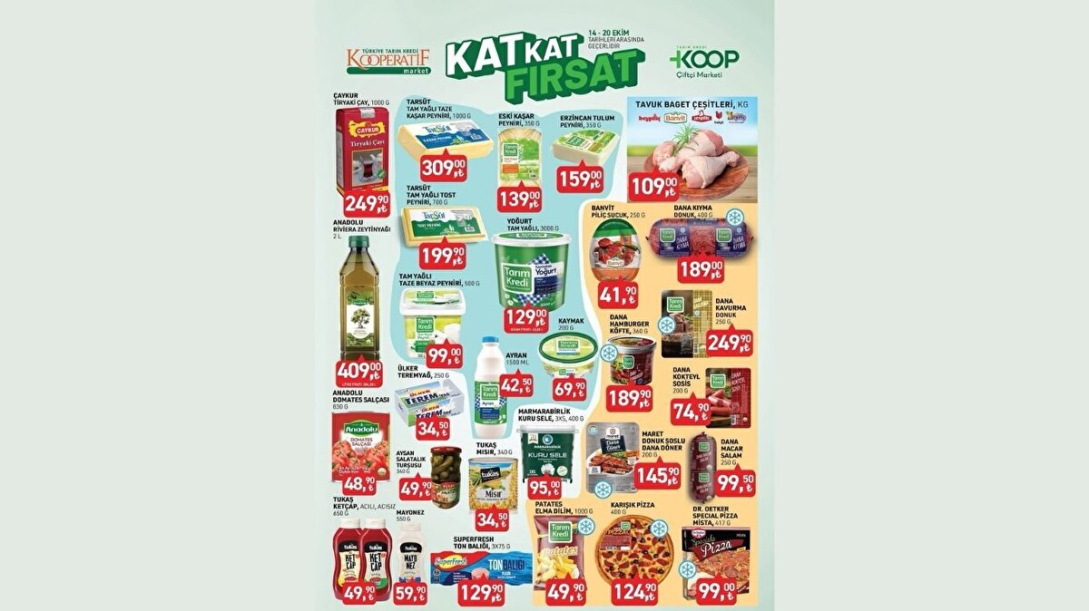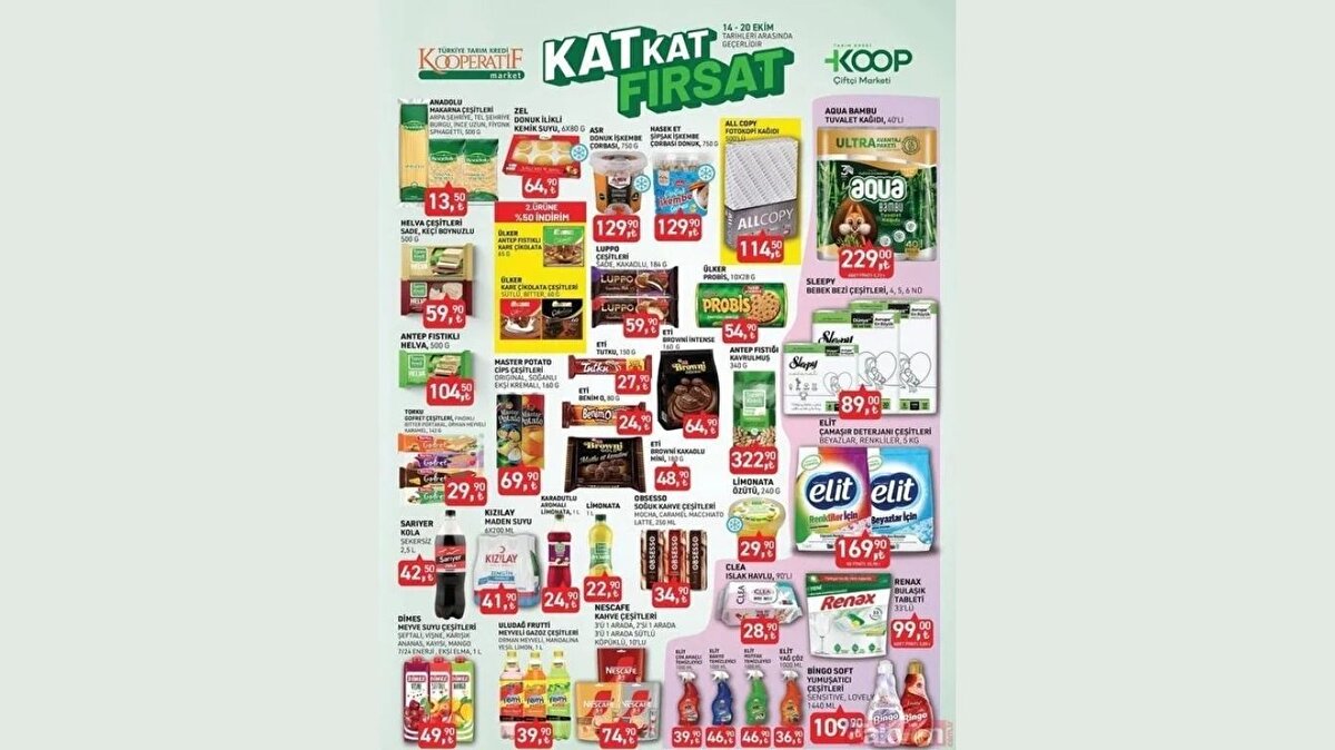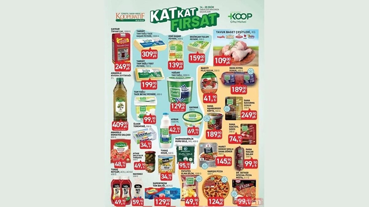 Tarım Kredi Kooperatif Market, Ekim ayının ortasında tüketicilerin yüzünü güldürecek yeni indirim kampanyasını duyurdu. 14 Ekim itibarıyla raflarda yerini alacak Kat Kat Fırsat kataloğu 20 Ekim 2025 Pazartesi gününe kadar geçerli olacak. Toplam 63 üründe yapılan indirimlerle hem temel gıda hem de temizlik ürünlerinde avantajlı fiyatlar sunuluyor.