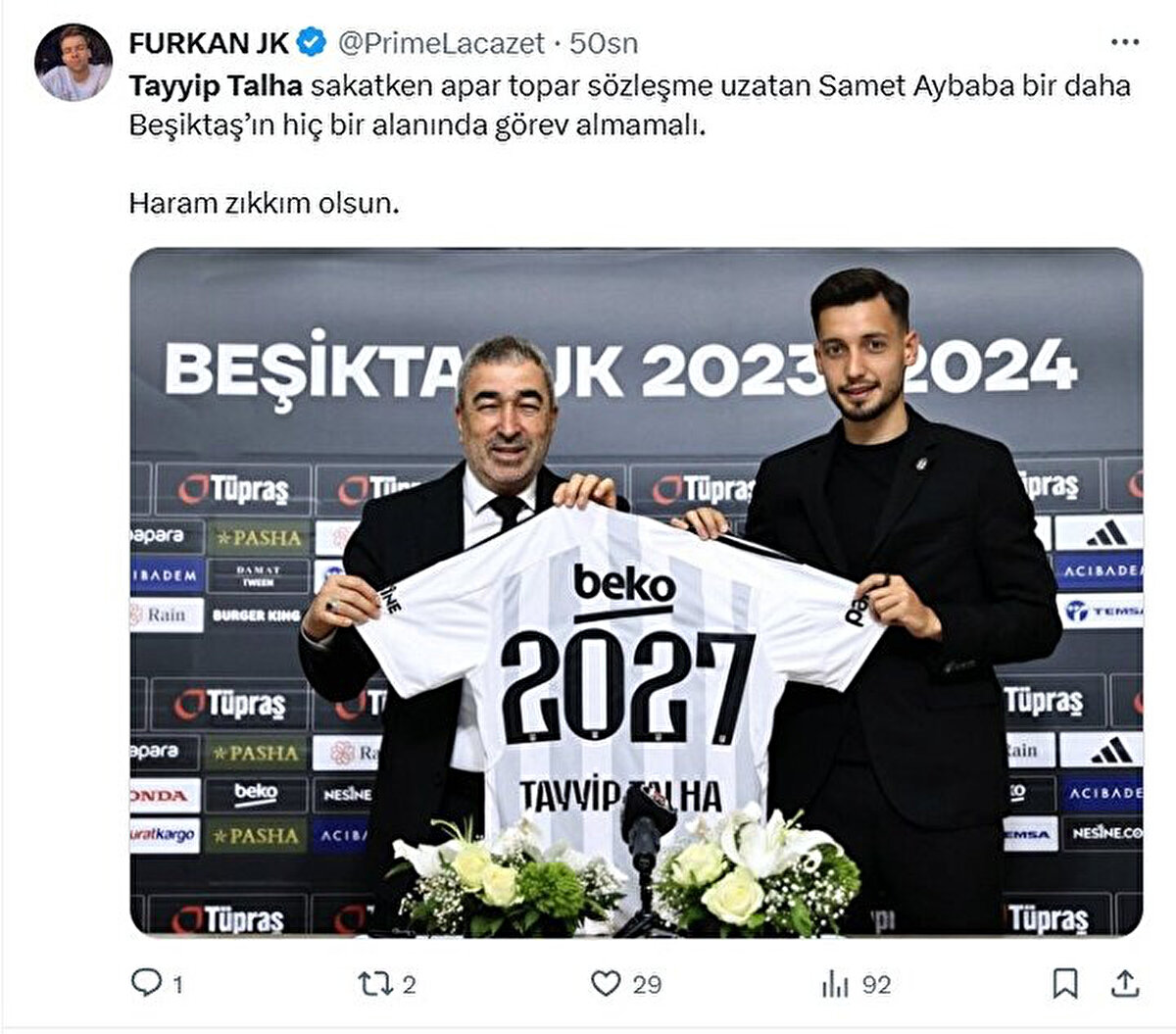 Beşiktaş'ta kırmızı kart gören Tayyip Talha'ya tepki büyük: "Haram zıkkım olsun"