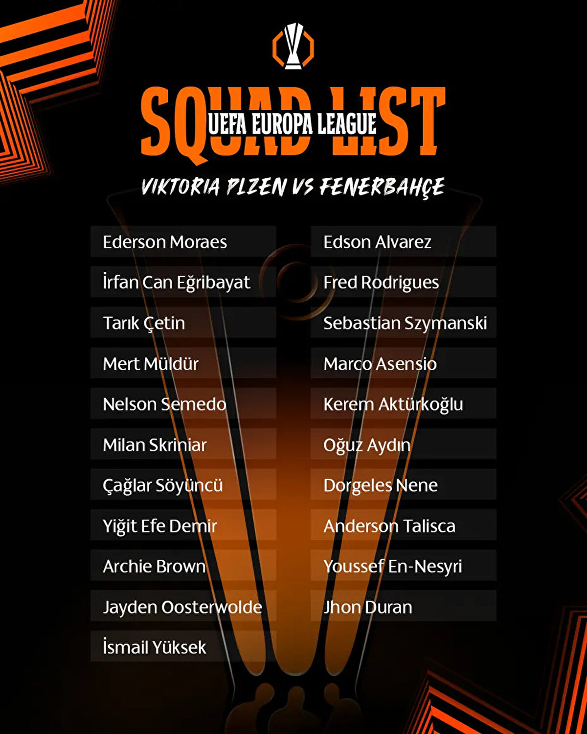 UEFA Avrupa Ligi'nde Viktoria Plzen'e konuk olacak Fenerbahçe'nin kamp kadrosu açıklandı.