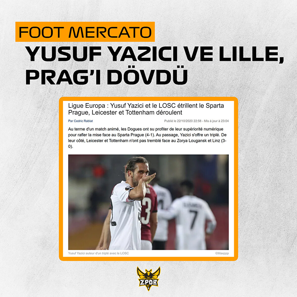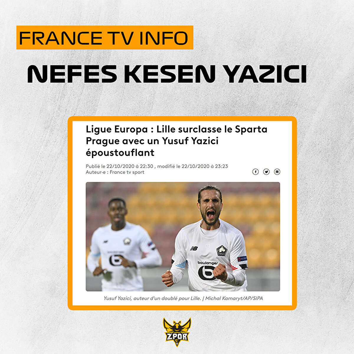 Avrupa Ligi'nde 4-1 kazandıkları Sparta Prag deplasmanında hat-trick yaparak maçın yıldızı olan Yusuf Yazıcı, Fransa'da manşetleri süsledi.