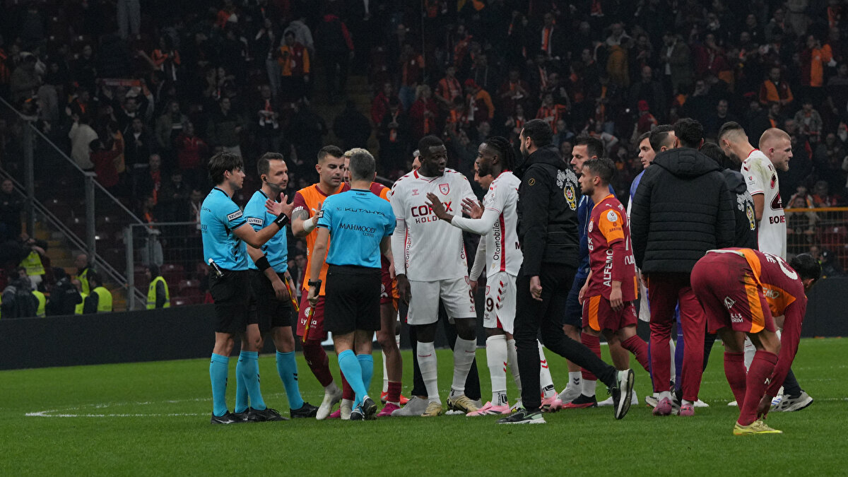 “66'da Kazımcan'ın ayağına Makoumbou, basıyor pozisyon G.Saray lehine penaltıydı. Hakem 'devam' dedi, VAR'ı dinledi ama VAR buna karışmaz.90+7'de Samsunspor penaltı bekledi.”