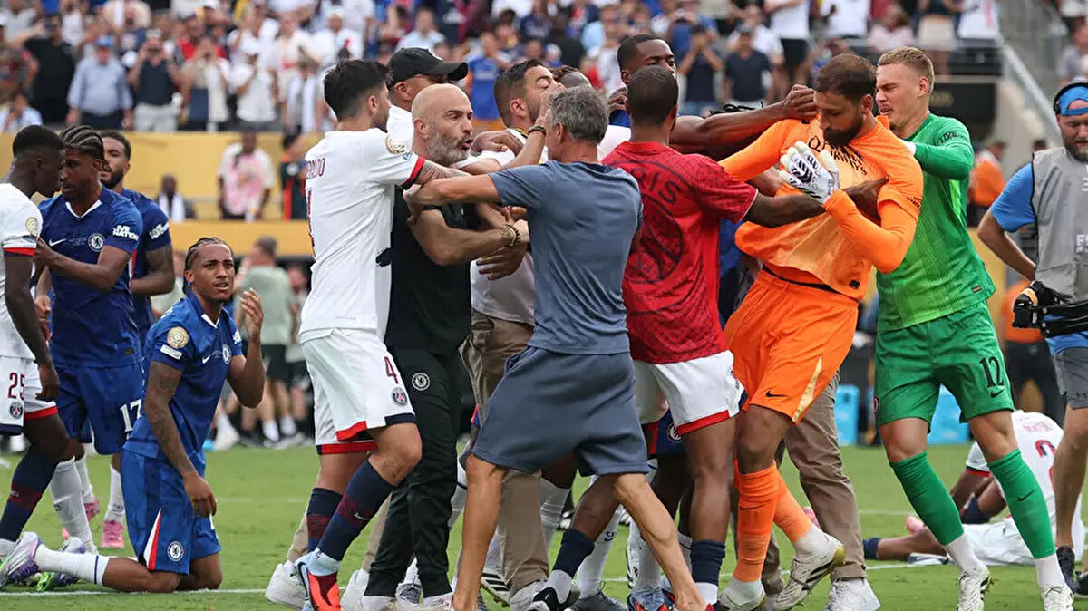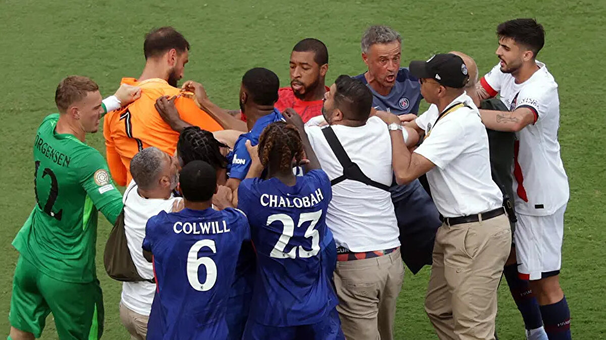 2025 FIFA Kulüpler Dünya Kupası'nın bitiş düdüğünün ardından Chelsea ve PSG oyuncuları sahada birbirine girdi. PSG Teknik Direktörü Luis Enrique Chelsea oyuncusu Joao Pedro'ya fiziki müdahalede bulundu. Luis Enrique'nin sinirli halleri dikkat çekerken gerginlik güçlükle yatıştırıldı.