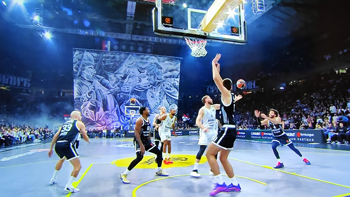 EuroLeague’in 12. haftasında Partizan ile Fenerbahçe’nin karşı karşıya geldiği mücadele öncesi tribünlerde tartışmalı bir görüntü ortaya çıktı.