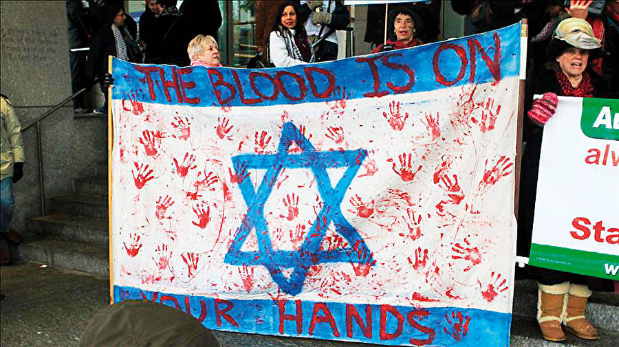 - Filistin halkına karşı işlediği suçlara karşı giderek artan miktarda kontrolsüz ABD mâlî desteği ve diplomatik dokunulmazlık sağlamak şeklinde deklare ediyor...