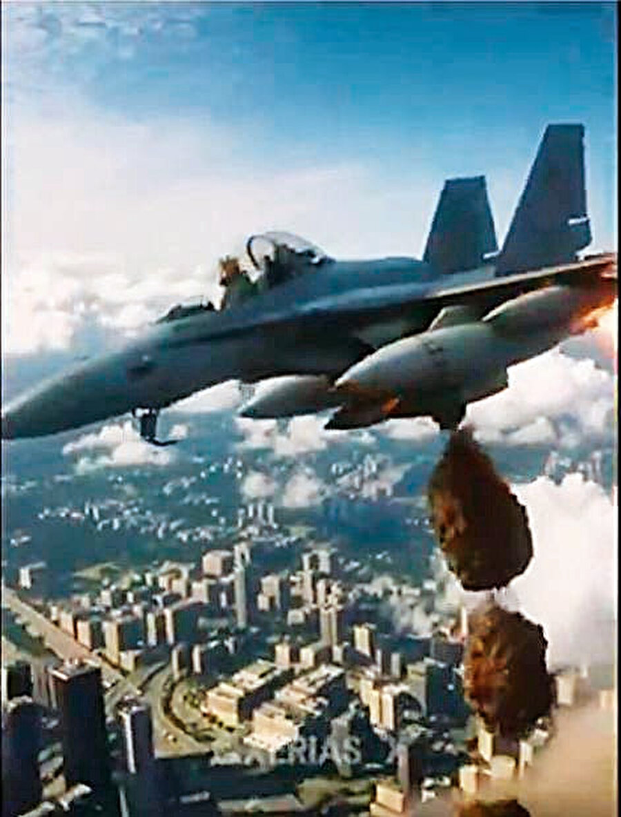 Savaş uçağına binip dışkı attı