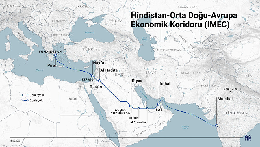 Neden derseniz, IMEC Hindistan’dan deniz yoluyla BAE’ye varıp oradan kara yoluyla Suudi Arabistan ve İsrail’e ulaşıyor, oradan da Akdeniz yoluyla Yunanistan üzerinden Avrupa'ya açılıyor. Dolayısıyla bizzat BAE’nin imza attığı Türkiye-Irak arasındaki Kalkınma Yolu’nu by-pass etmekle kalmıyor, aynı zamanda Türkiye’yi denklem dışı bırakıp, İsrail ve Yunanistan’ı projenin kilit ülkeleri olarak öne çıkarıyor.