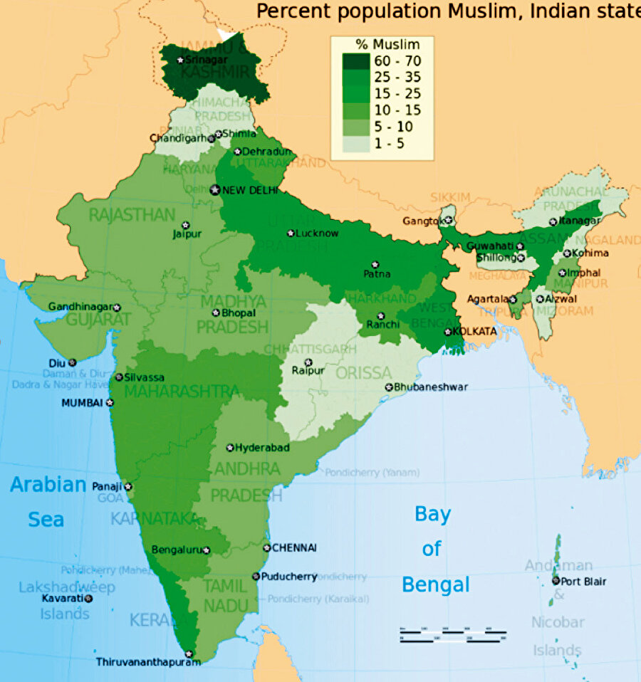 Hindistan’ın ilk camii Tabiinden Mâlik bin Dînar (r.a.) tarafından 729 yılında Kerala'daki Çeraman’da inşa edilir. Bugün 1,5 milyara yaklaşan nüfusu ile Hindistan dünyanın en çok nüfusa sahip ülkesi. Çin ise 1,4 milyarla ikinci. Ülkenin resmi rakamlarına göre yüzde 15-20 kadarı Müslüman. Kimi kaynaklara göre yüzde 30’dan fazlası… Pakistan ve Bangladeş, Hindistan’dan koparılmasaydı bugün Hindistan bir İslam ülkesi olacaktı.