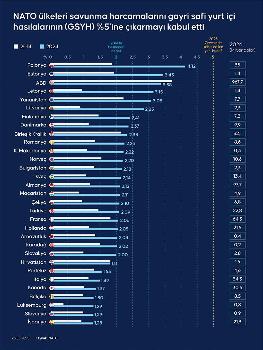 - NATO ülkeleri savunma harcamalarını artırıyor. Fakat bu harcamalar geçmişte olduğu gibi ABD’den silah almak yerine kendi savunma sanayilerine yatırım yapmak şeklinde olacak, böyle bir irade söz konusu.