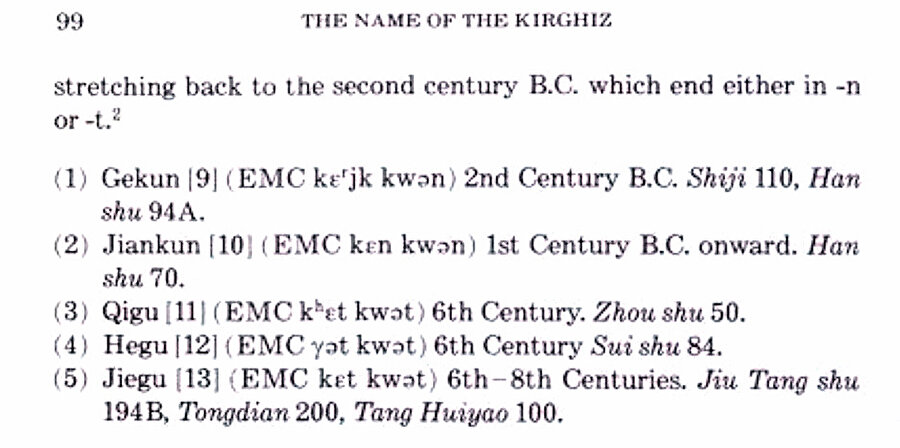 Çin kroniklerinde Kırgızlar beş isimle kayıtlıdır ve dikkat edilirse bunların aslında birbirinden pek de uzak olmadıkları görülür.