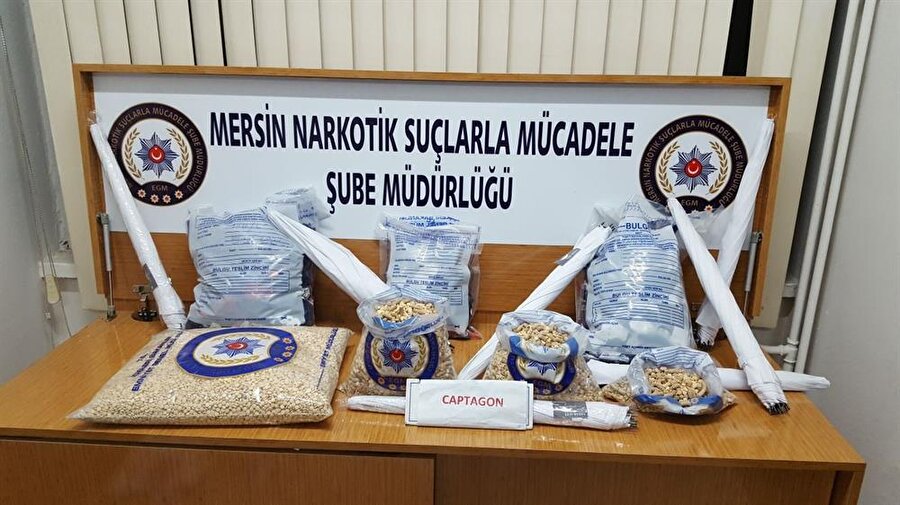 Ekipler aynı evin duvar dibindeki çuvallardan da şüphelenerek arama yaptı. Yapılan aramada 10 adet çuvalın içerisinde bulunan 790 şemsiyeye gizlenmiş vaziyette 100 bin 920 adet captagon hap eloe geçirildi.
