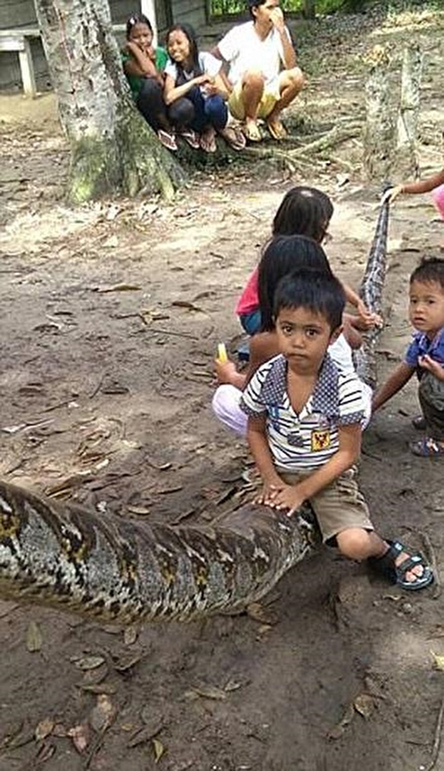 Hayatını kaybeden piton ise köydeki bir çamaşır ipine asılarak sergilendi.