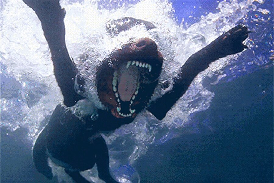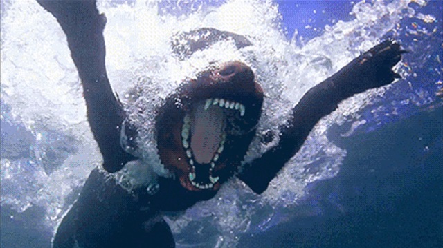 Suda avlanan köpek Açlık çok kötü bir şey olsa gerek :)
