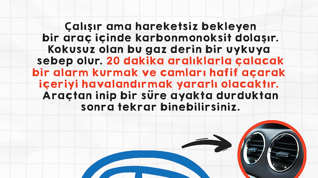 Soğuk ve zorlu günü arabada noktalayacak olanların dikkat etmesi gereken bir husus var. Uzun süre hareketsiz ama çalışır vaziyette bekleyen bir aracın içinde olmak başka hasarlara yol açmasın.