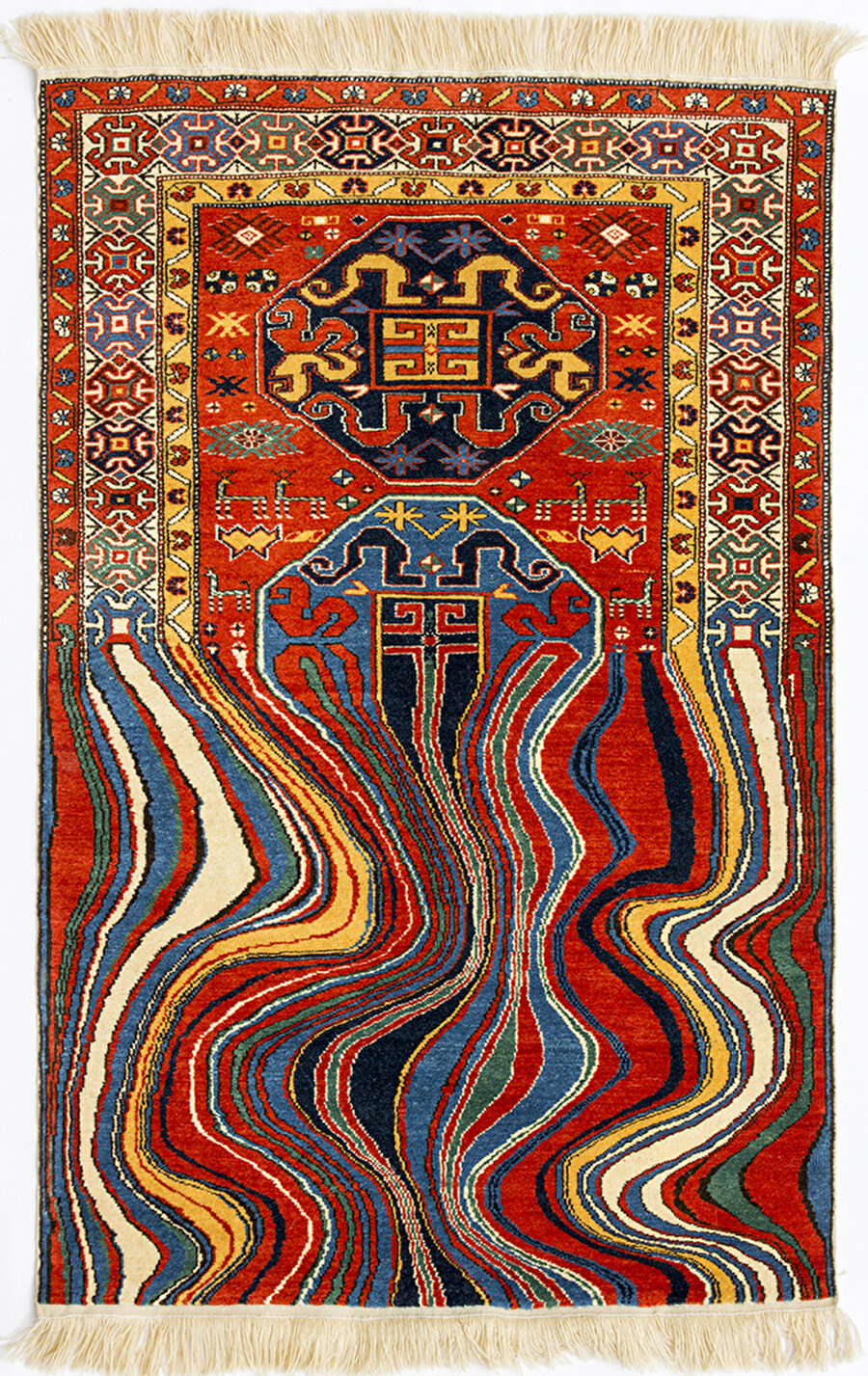 Bakülü sanatçı Faig Ahmed farklı desenlerde halılar tasarlıyor. Genel olarak bir halıda istenilmeyecek renk akması, püsküllerinin kopması gibi durumları halılara işliyor. Bunun dışında dizi ve filmlerde sıkça rastladığımız buzlama gibi farklı tasarımlar da deneyen Ahmed'in bu eserlerini sizler için listeledik.