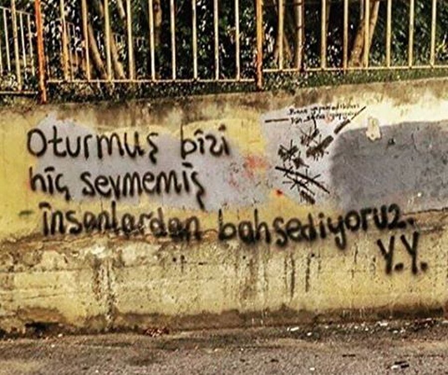 Milletçe ne yapıp edip anlatacağız derdimizi, kimi zaman yıkık bir duvara bazen bir tuvalet kapısına… Mantıklı mantıksız, alakalı alakasız; komik, ironik ne varsa boş bulduğun müsait bir yere çaktırmadan yaz gitsin!
