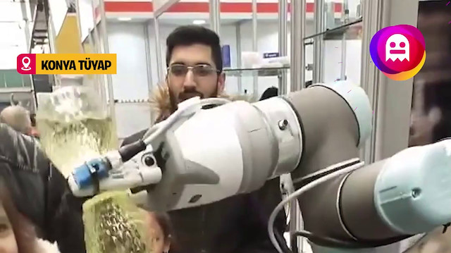 Konya Tüyap Fuarı'nda sırf kolonya tutsun diye misafirleri karşılamak için robot yapmaları Konyalıların ne kadar misafirperver ve masraftan kaçınmadıklarını gözler önüne seriyor... Helal olsun! :)