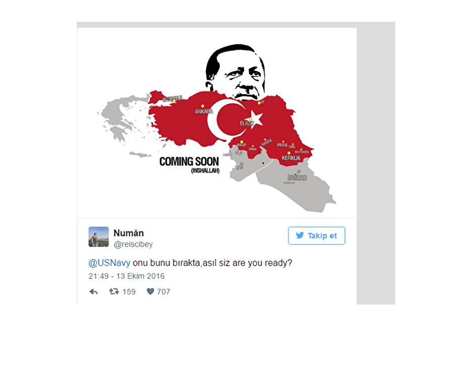 Yeni bir güncelleme yapalım. ABD Donanması bahsi geçen iletiyi Türklerden gelen aşağıdaki tepkilerden dolayı twitter hesabından kaldırdı.